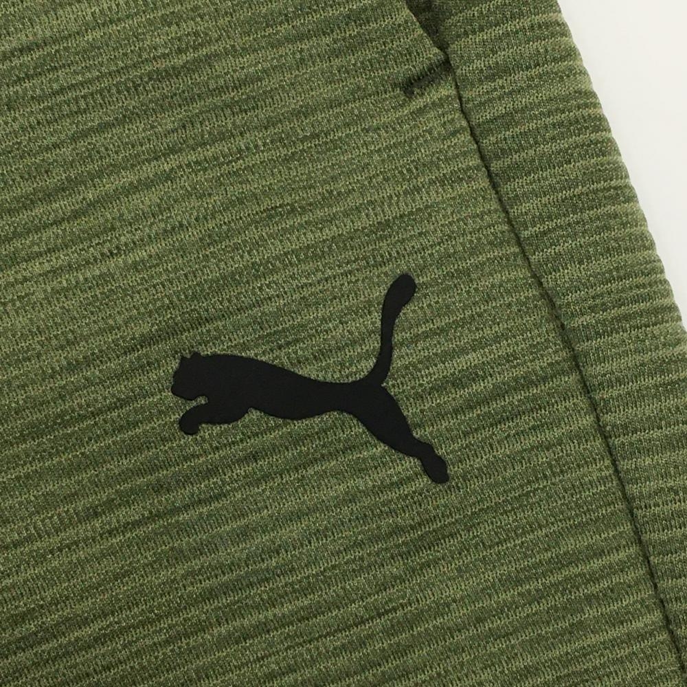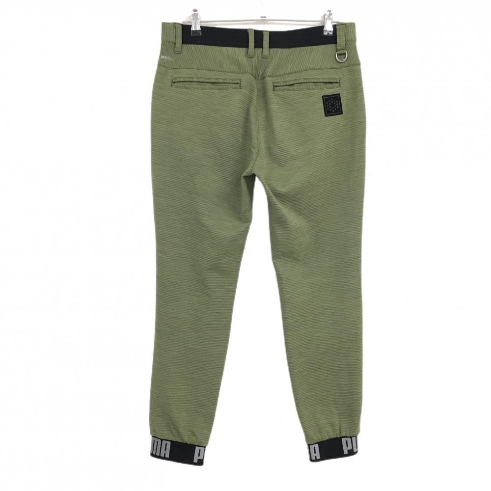 【超美品】プーマ ジョガーパンツ モスグリーン×黒 ボーダー調織生地 裾ロゴ 後ろウエストゴム メンズ L ゴルフウェア PUMA