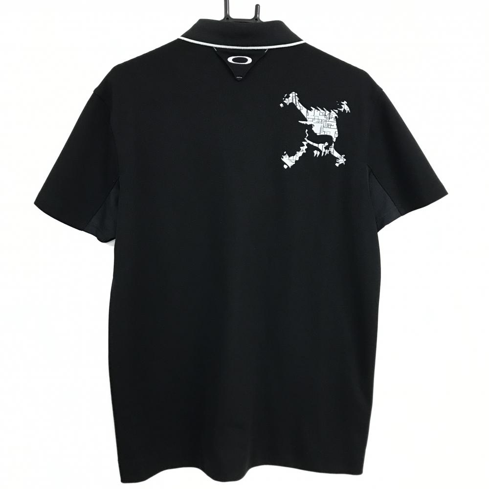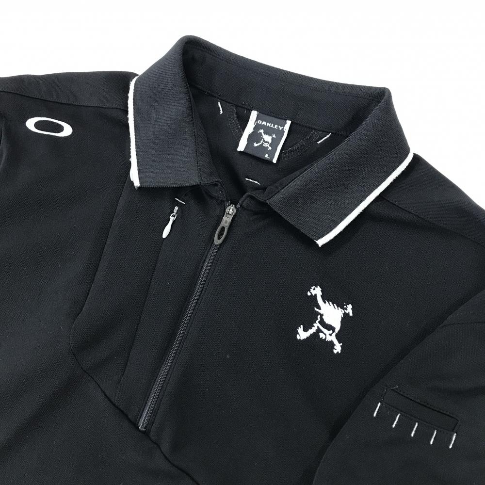 オークリー 半袖ポロシャツ 黒 ロゴ白 袖下メッシュ ハーフジップ ティー装着可 メンズ L ゴルフウェア Oakley