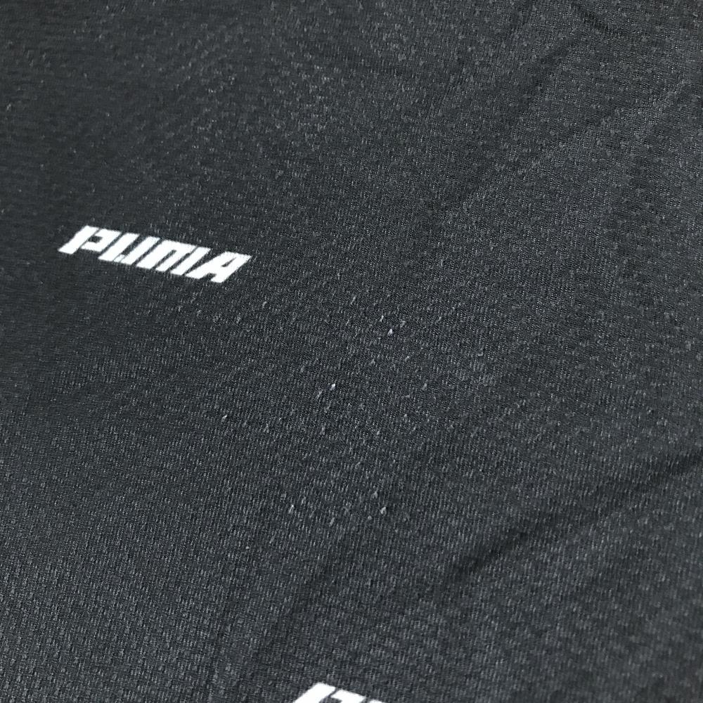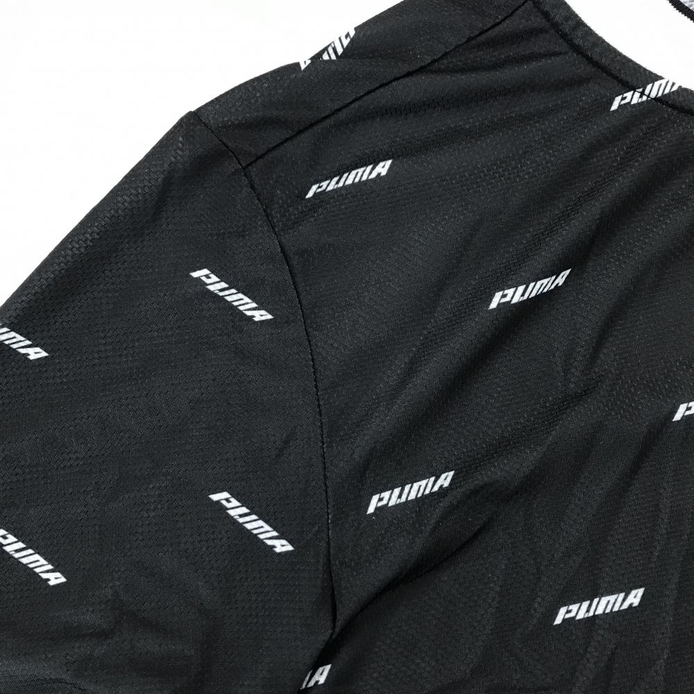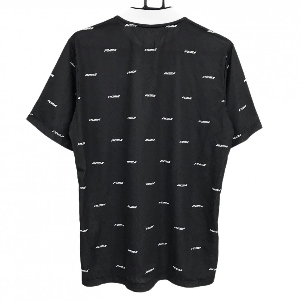 プーマ 半袖ポロシャツ ダークグレー×白 ロゴ英字総柄 スタンドカラー 織生地 メンズ XL ゴルフウェア PUMA