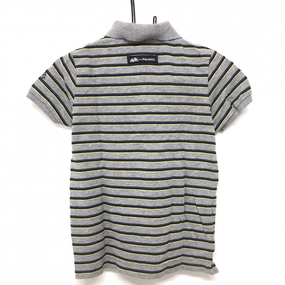 【超美品】パーリーゲイツ×PEANUTS 半袖ポロシャツ グレー×ネイビー ボーダー スヌーピー レディース 1(M) ゴルフウェア PEARLY GATES
