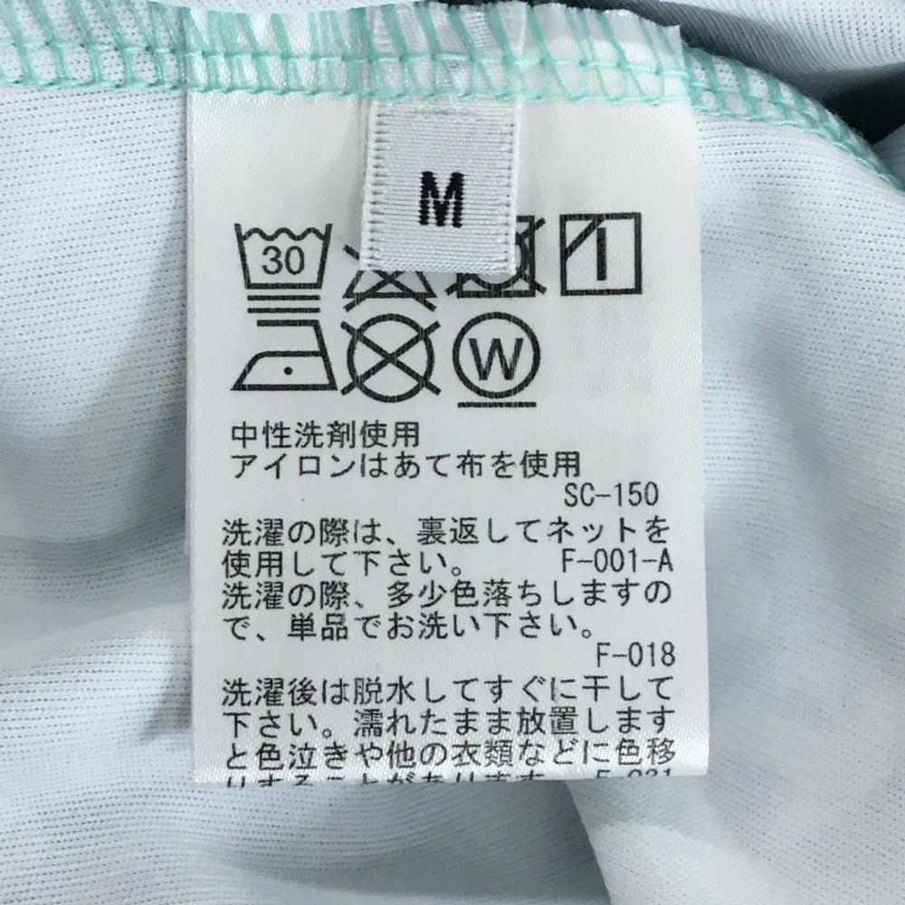 【超美品】ジュンアンドロペ 半袖ポロシャツ ライトグリーン×ネイビー スタンドカラー 総柄 レディース M ゴルフウェア JUN&ROPE