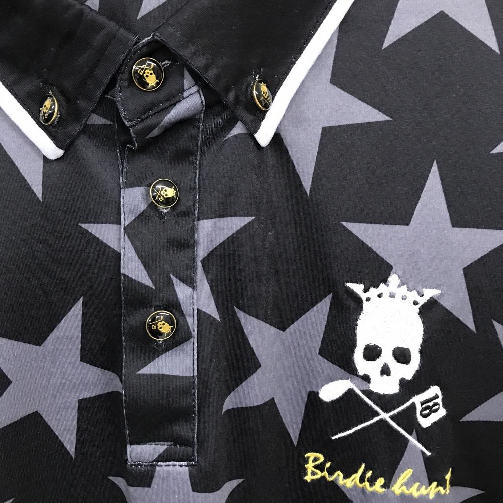 【超美品】バーディーハント 半袖ポロシャツ 黒×グレー 星柄 スカル刺しゅう メンズ LLLL ゴルフウェア 大きいサイズ Birdie hunt