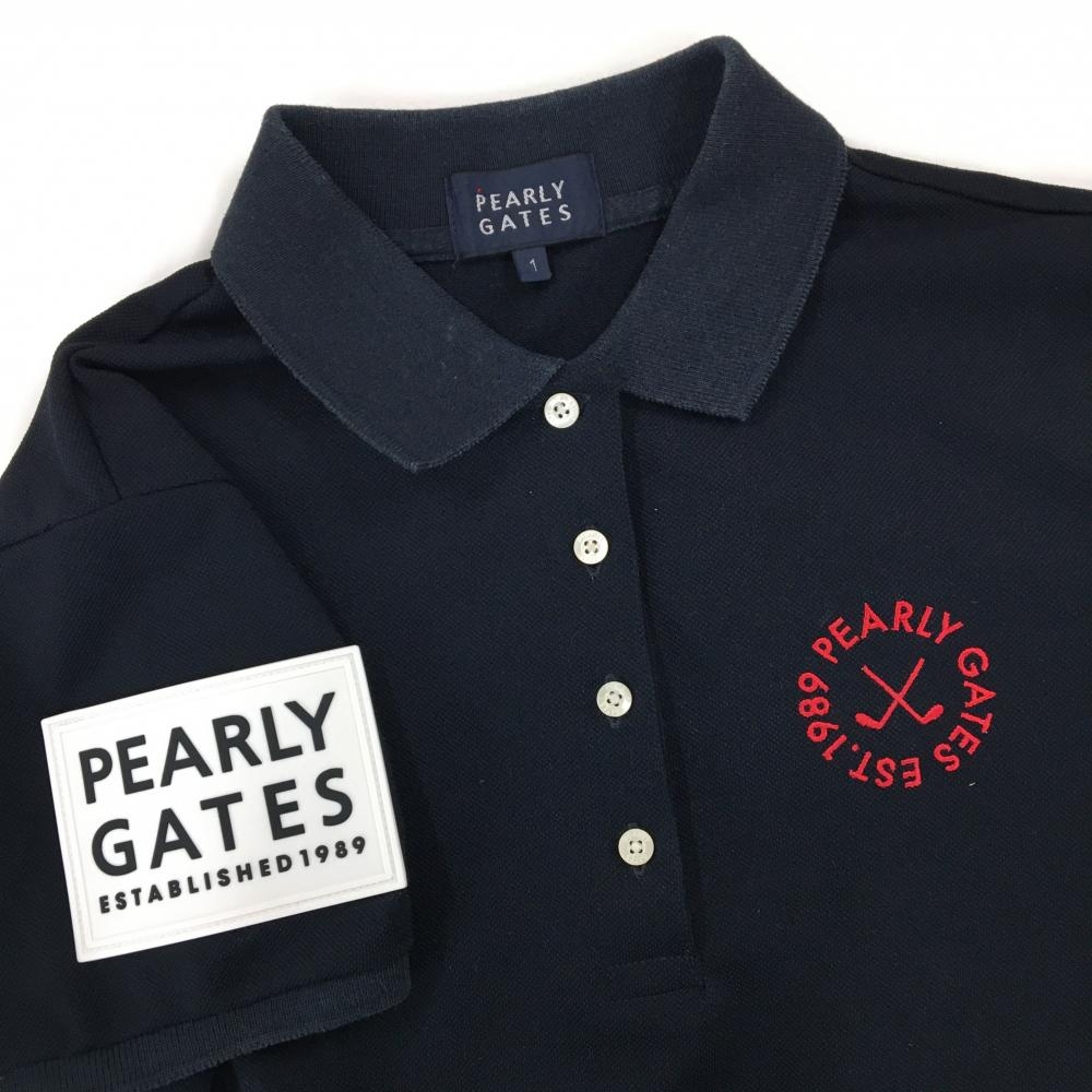 パーリーゲイツ 半袖ポロワンピース ダークネイビー×レッド×白 胸ロゴ レディース 1(M) ゴルフウェア 2023年モデル PEARLY GATES