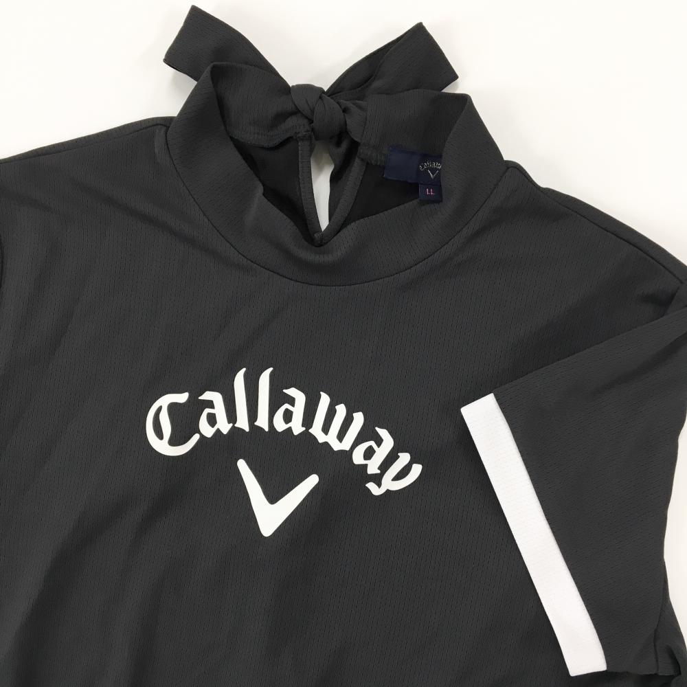 【超美品】キャロウェイ 半袖ワンピース ダークグレー×白 ネック後ろリボン レディース LL ゴルフウェア 2024年モデル Callaway