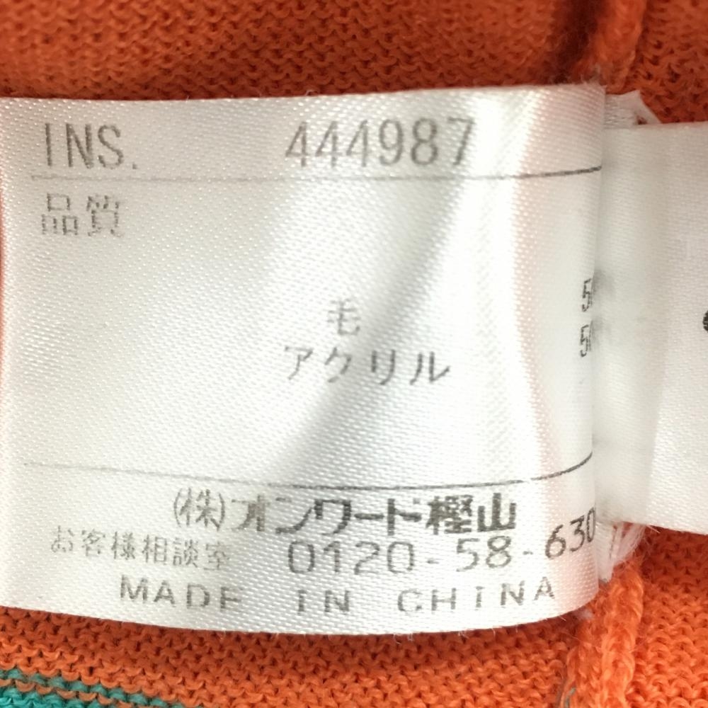 【美品】23区スポーツ セーター オレンジ×ブルーグリーン×白 一部ボーダー ニット ウール混 薄手 レディース II(L) ゴルフウェア 23区