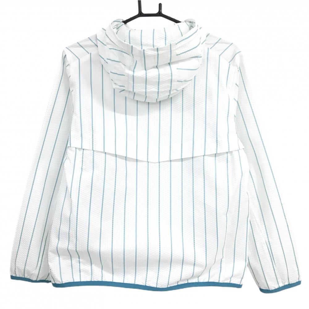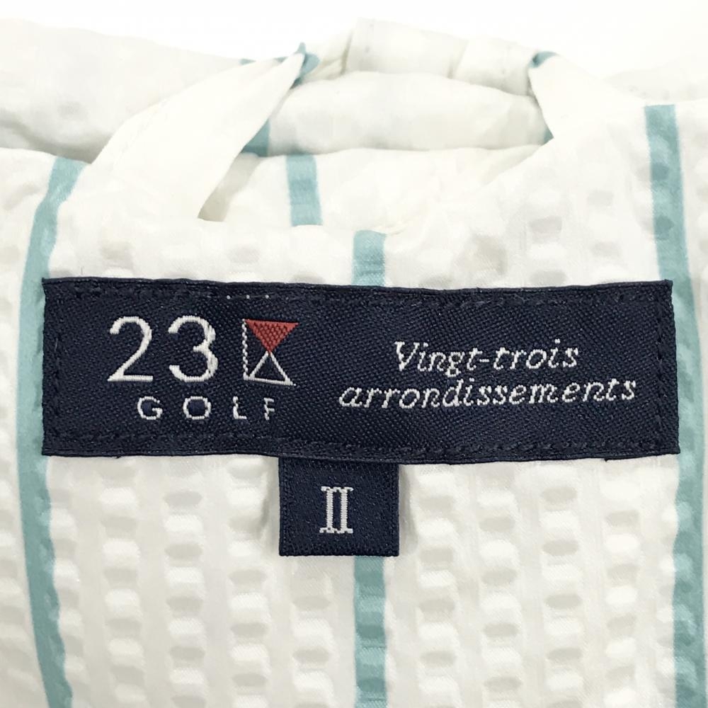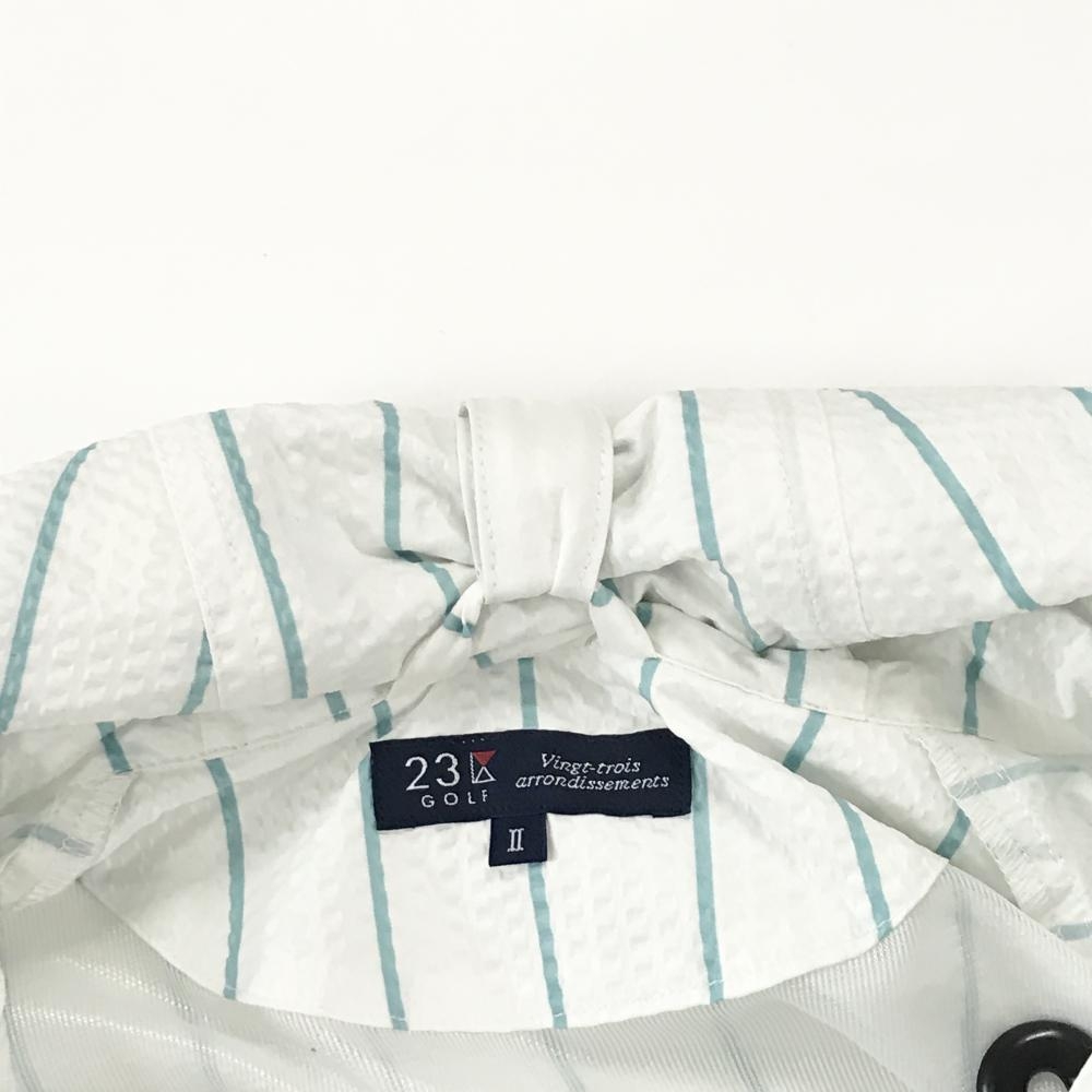 【超美品】23区ゴルフ ジップパーカー 白×グリーン ストライプ 凹凸生地 ブルゾン フード折り畳み可 レディース II(L) ゴルフウェア 23区