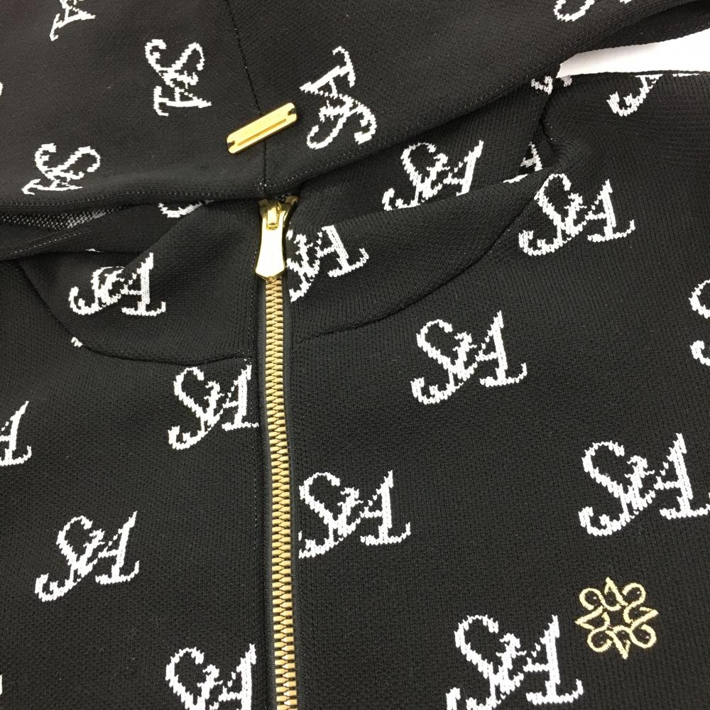 セントアンドリュース ニットジップパーカー 黒×白 ロゴ総柄 ダブルジップ レディース M ゴルフウェア 2024年モデル St ANDREWS