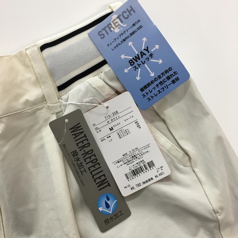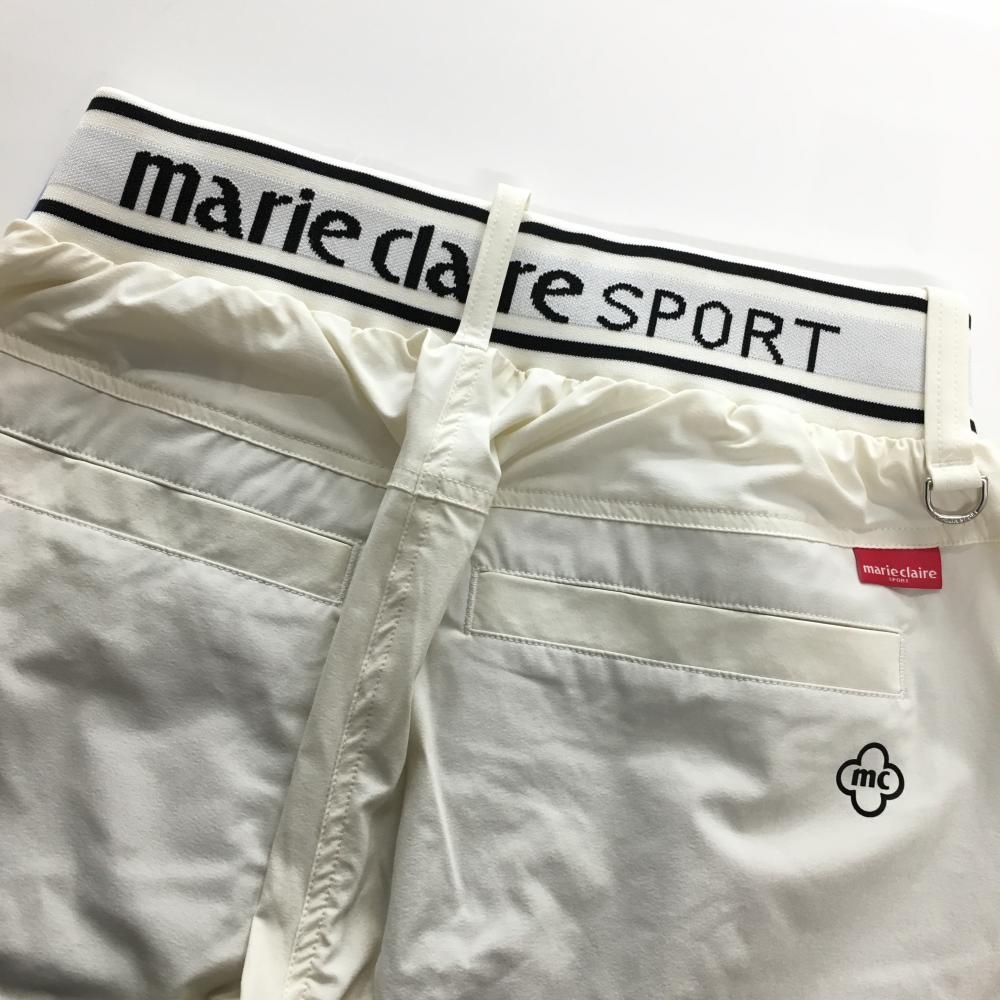 【新品】マリクレール パンツ 白 ウエストロゴ ストレッチ レディース M ゴルフウェア marie claire