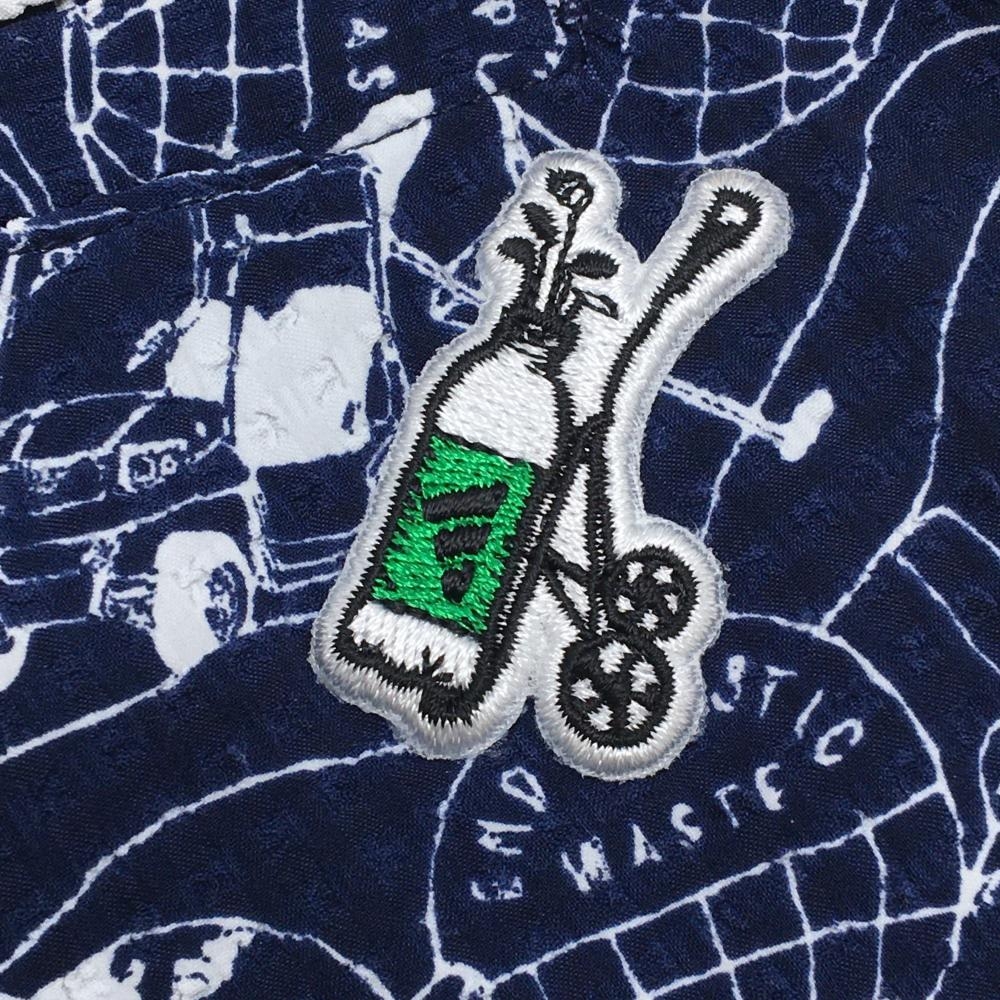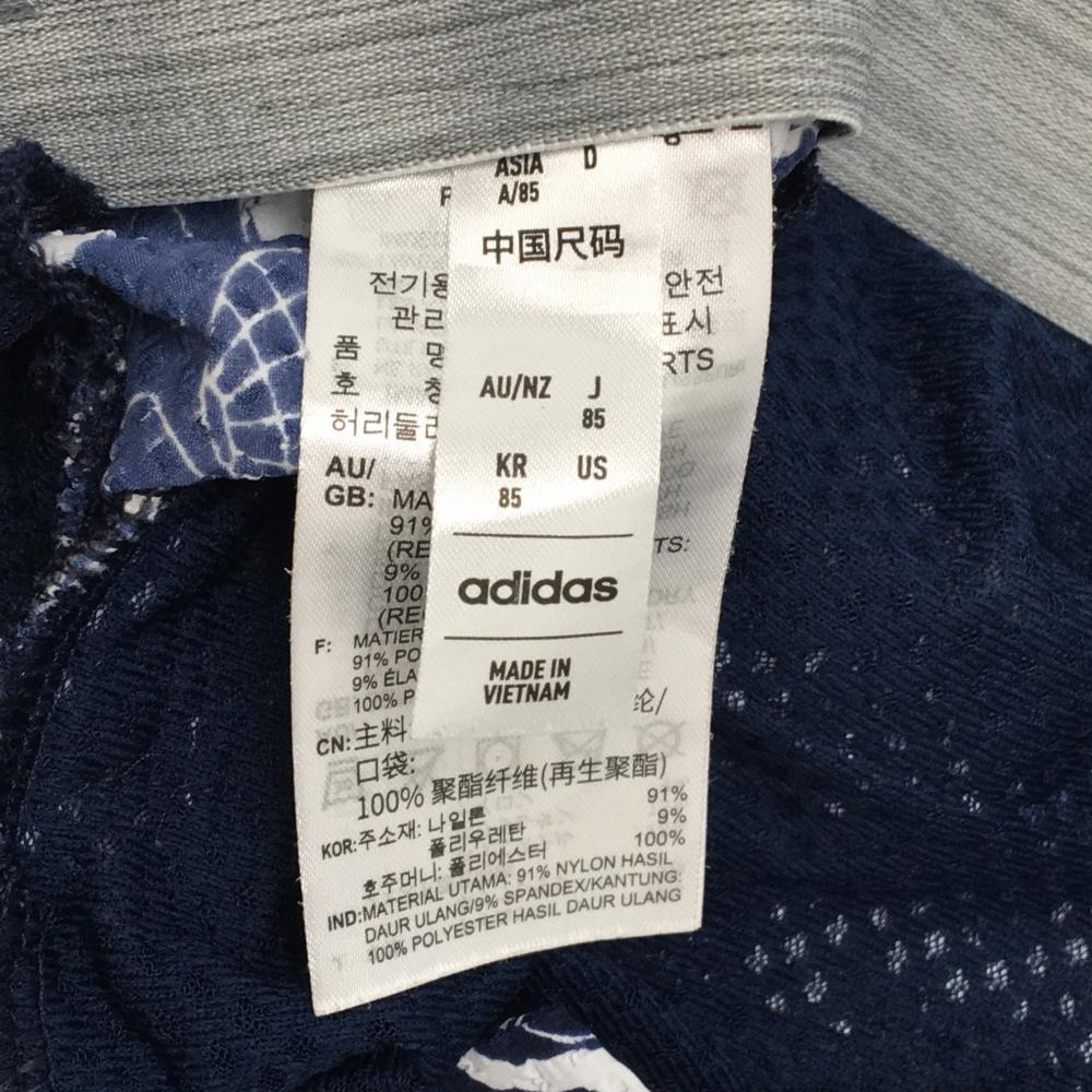【超美品】アディダス ハーフパンツ ネイビー×白 総柄 サッカー生地 ストレッチ メンズ 85 ゴルフウェア adidas