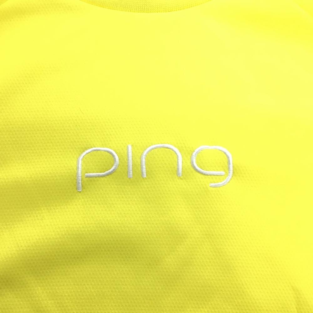 【超美品】ピン 半袖ハイネックシャツ イエロー×白 胸ロゴ刺しゅう レディース L ゴルフウェア 2025年モデル PING