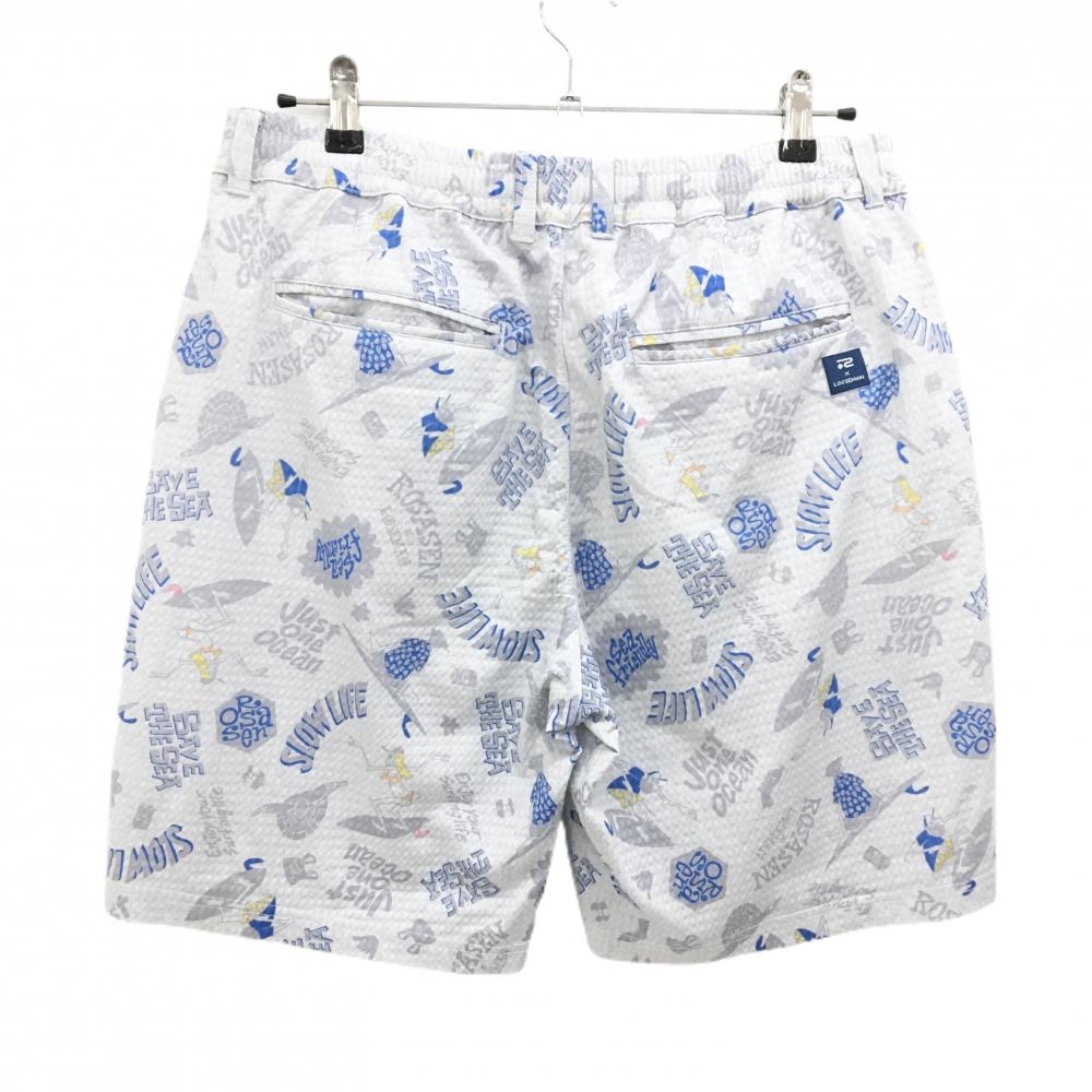 ロサーセン ハーフパンツ ライトグレー×グレー×ブルー 総柄 ウエストゴム ストレッチ メンズ 88 ゴルフウェア Rosasen