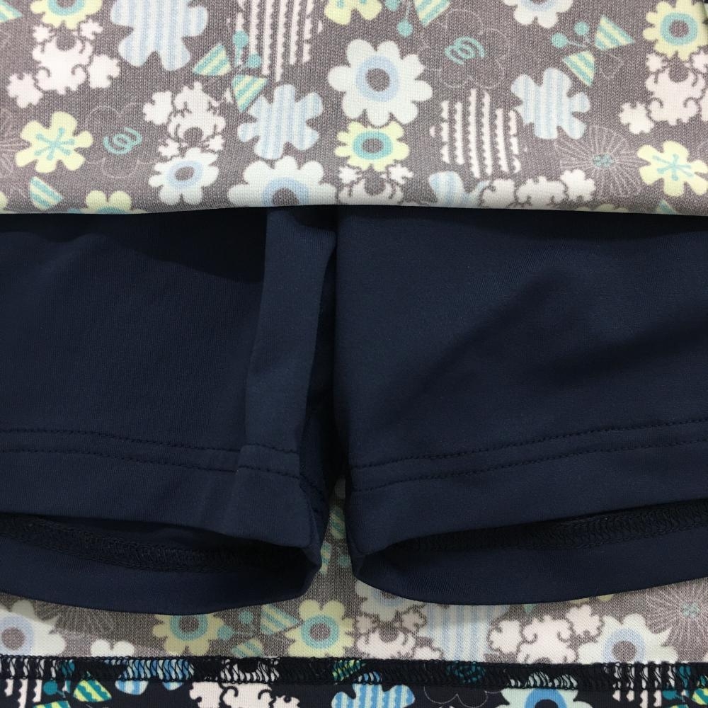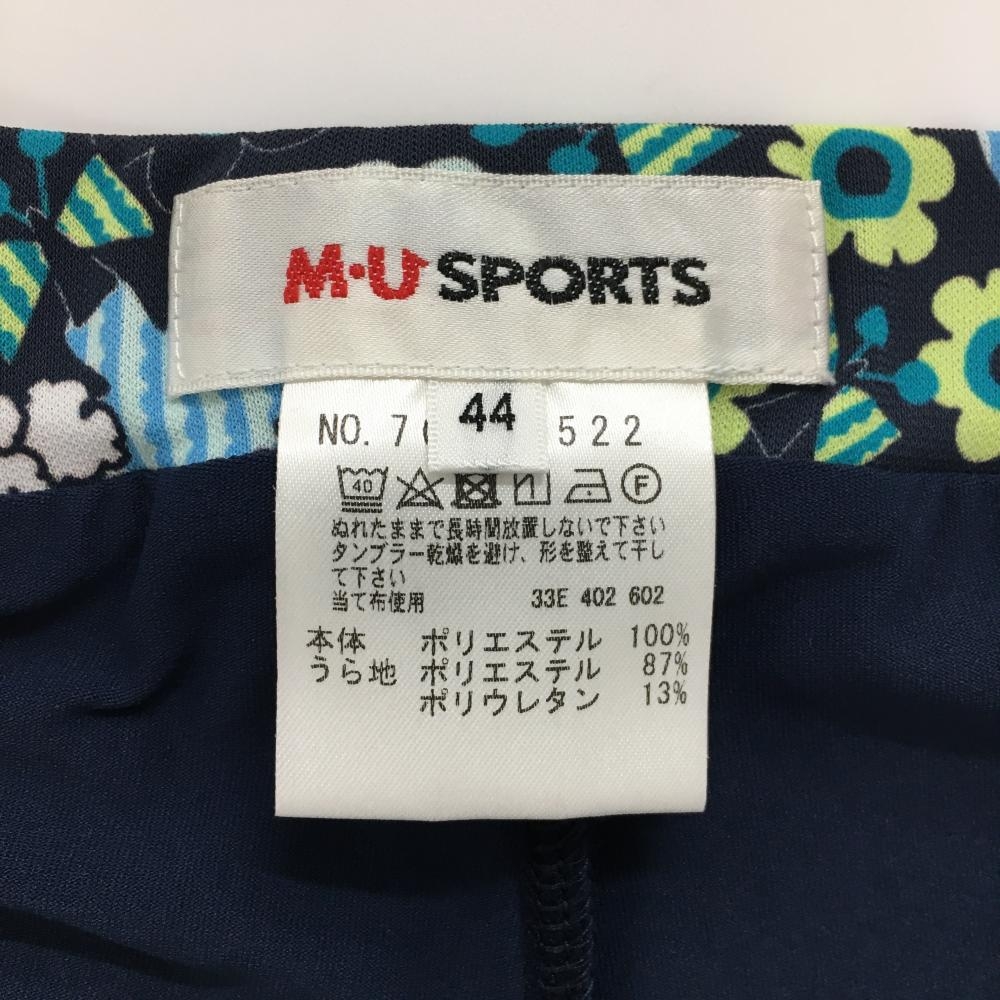 【超美品】MUスポーツ スカート ネイビー×ブルー系×グリーン系 総柄 花 犬 レディース 44(XL) ゴルフウェア M・U SPORTS
