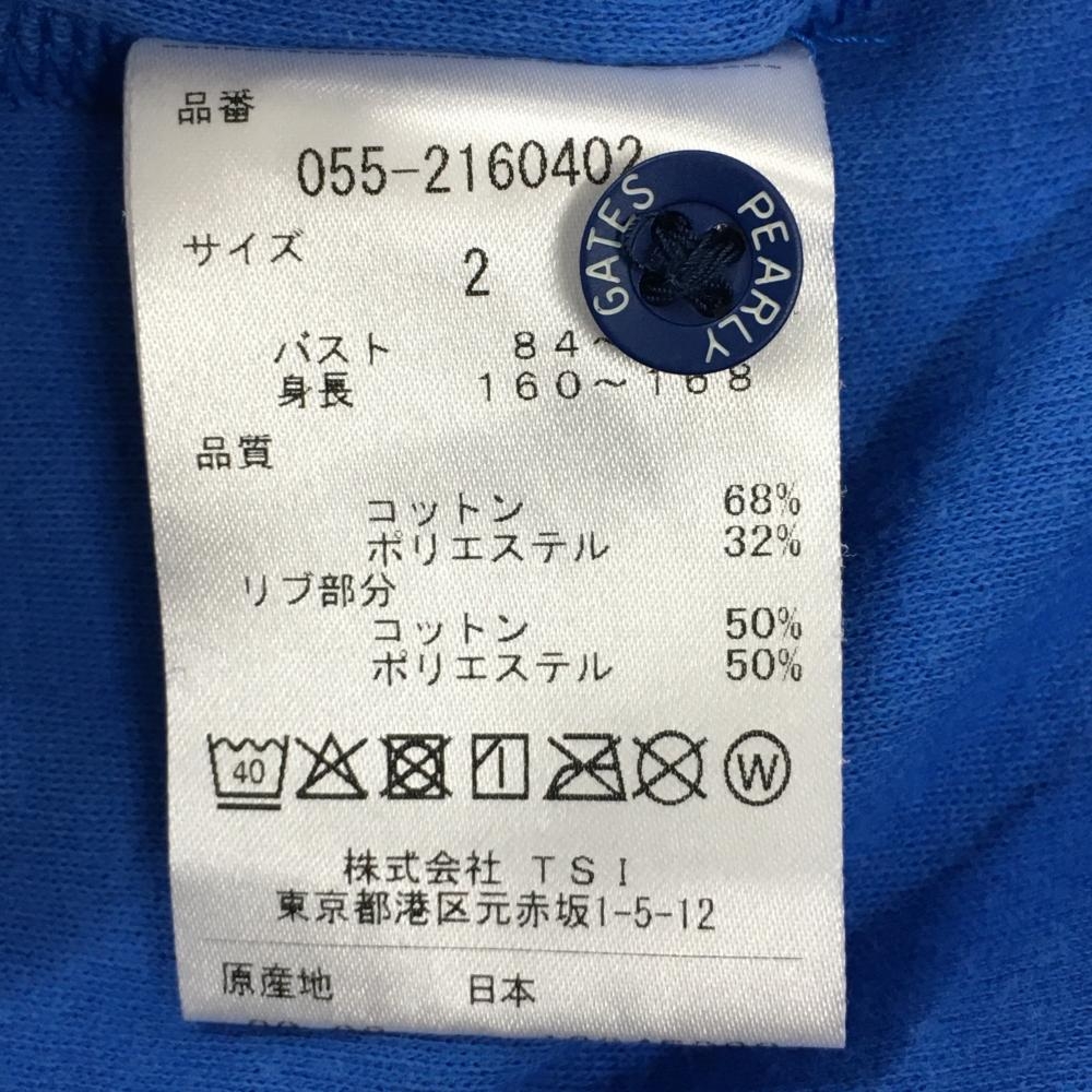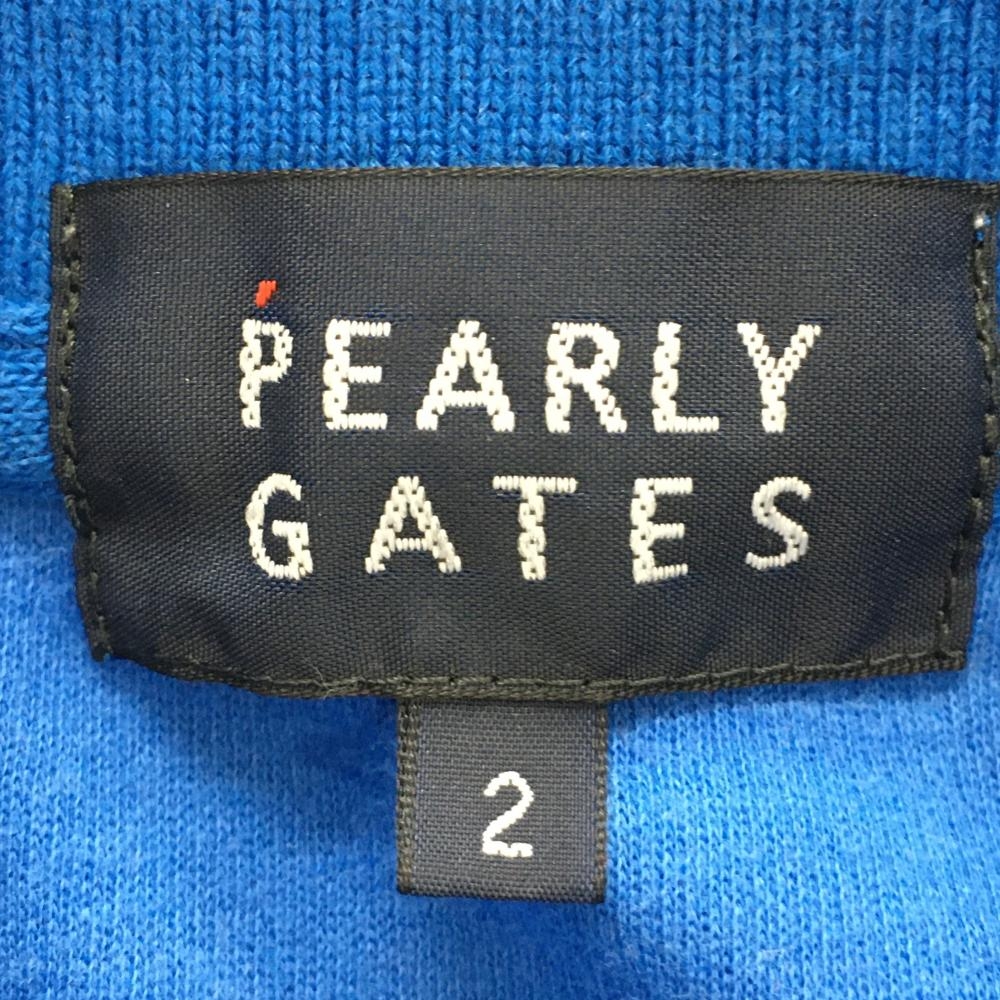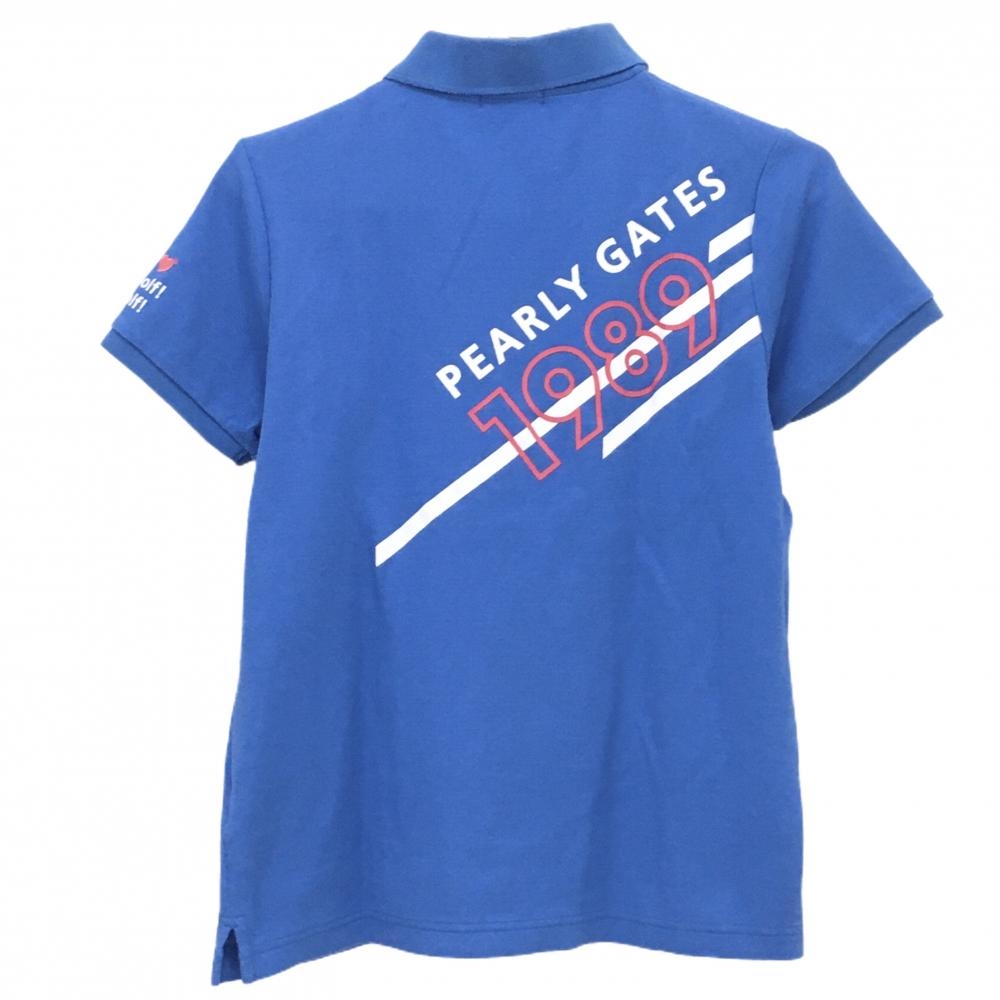 パーリーゲイツ 半袖ポロシャツ ブルー×白 ロゴプリント レディース 2(L) ゴルフウェア PEARLY GATES