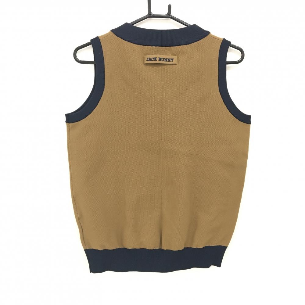 【超美品】ジャックバニー ベスト ブラウン×ネイビー 前身頃ライン Vネック レディース 1(M) ゴルフウェア Jack Bunny