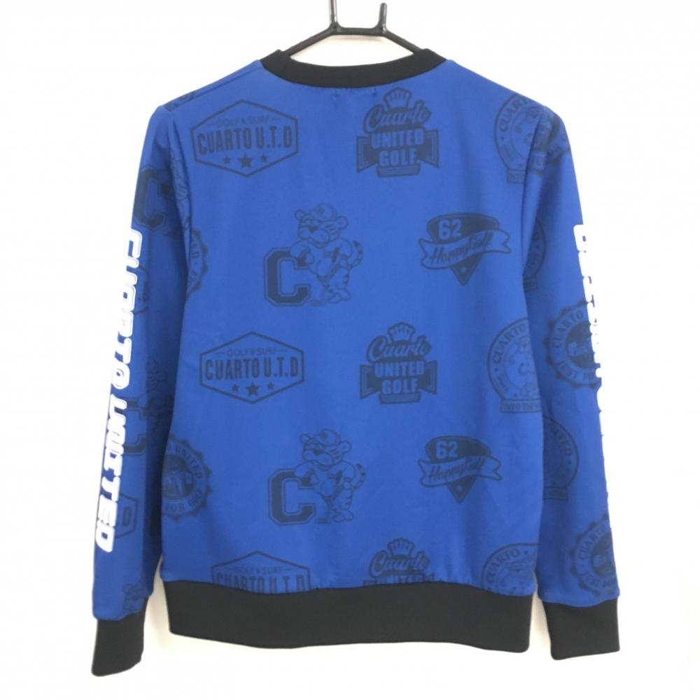【超美品】クアルトユナイテッド トレーナー ブルー×黒 トラ柄 薄手 レディース S ゴルフウェア CUARTO UNITED