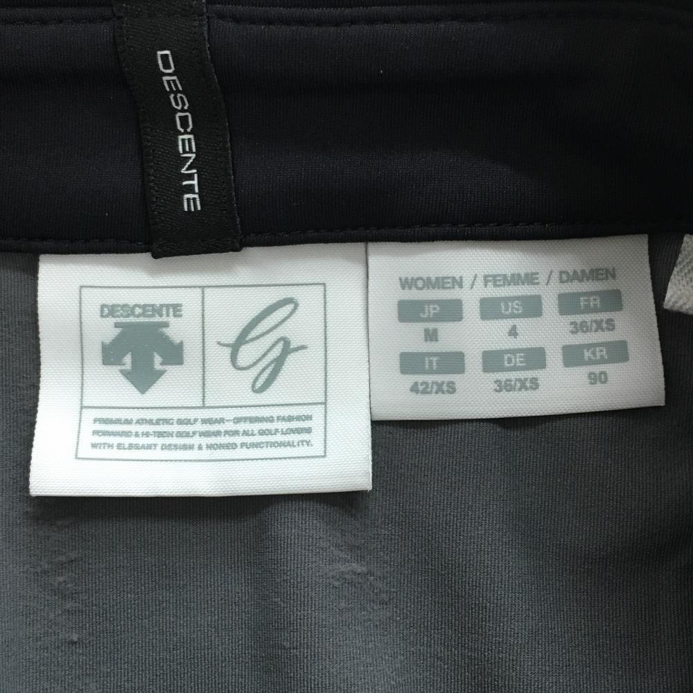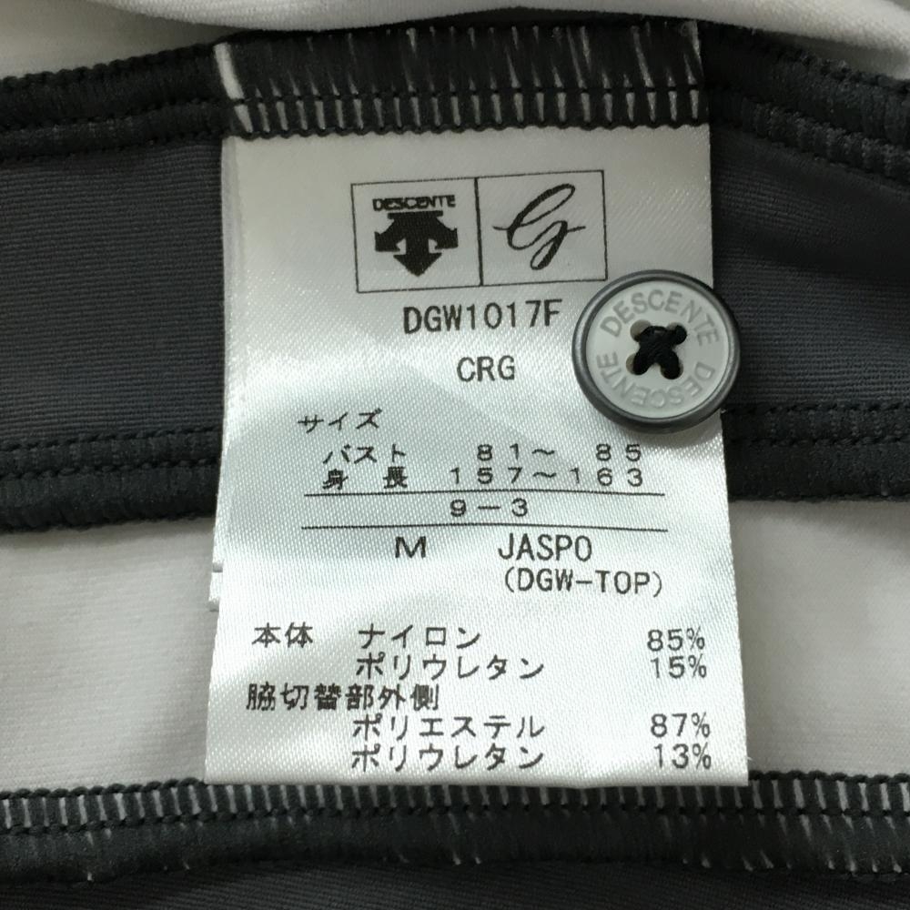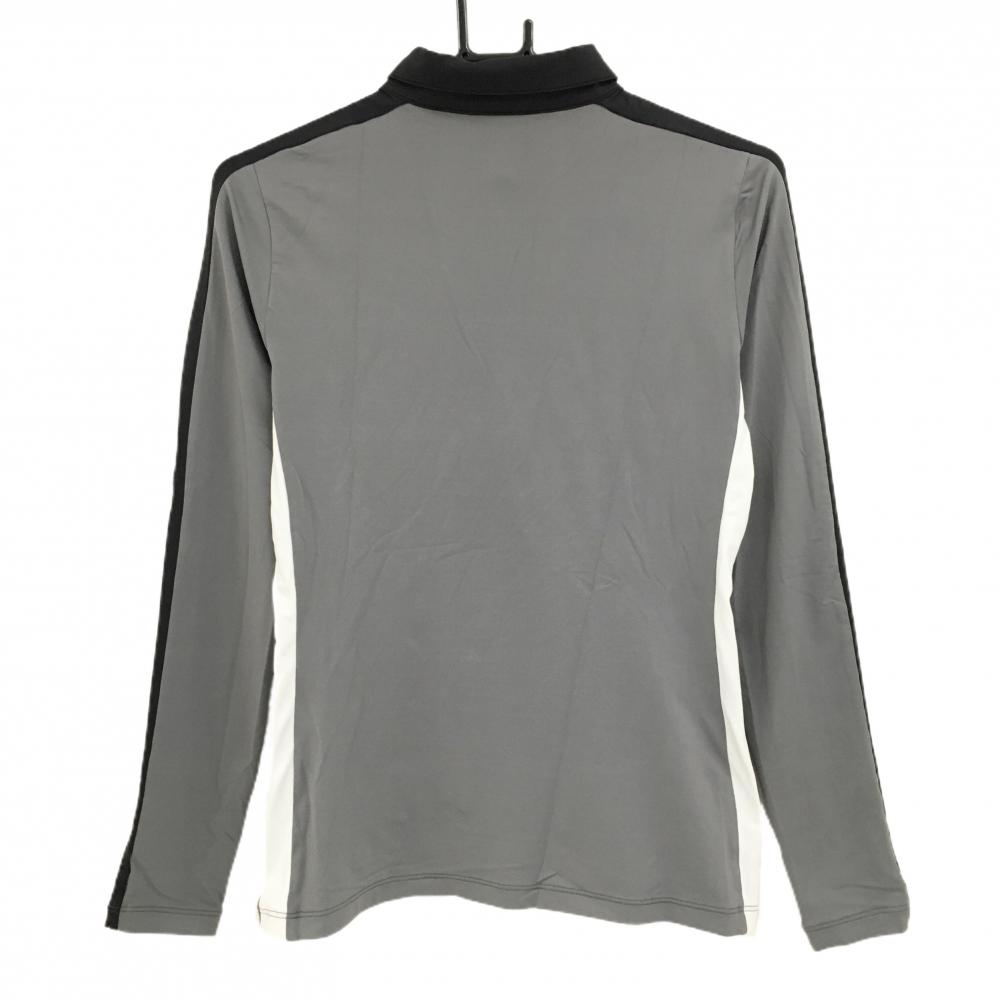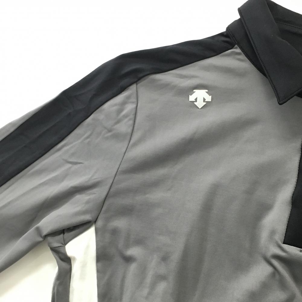 【美品】デサントゴルフ 長袖ポロシャツ グレー×黒 肩ロゴ ストレッチ サイド2ライン 中田英寿 レディース M ゴルフウェア DESCENTE