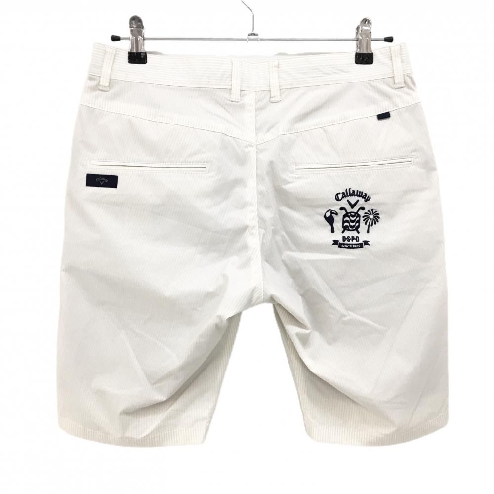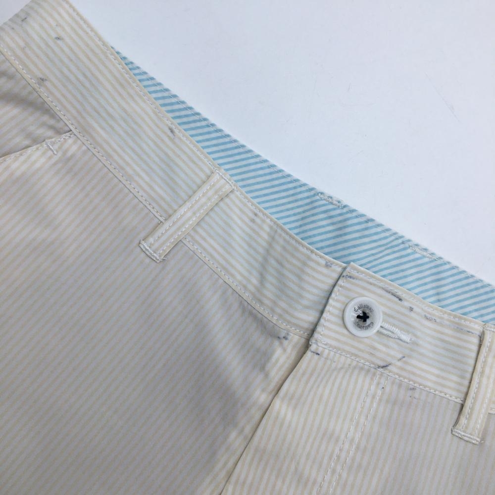 キャロウェイ ハーフパンツ 白×ライトベージュ ストライプ ロゴネイビー メンズ M ゴルフウェア Callaway