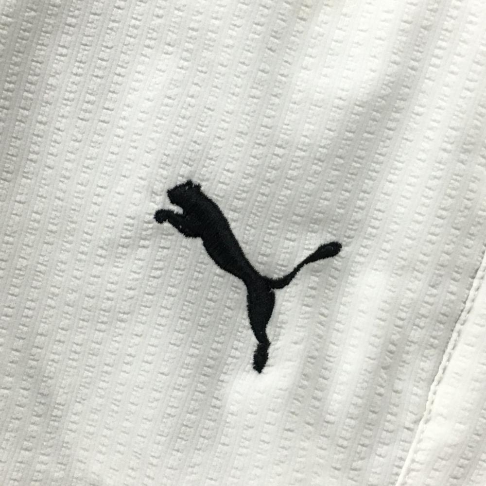 プーマ ハーフパンツ 白×黒 サッカー生地 ロゴ刺しゅう メンズ XL ゴルフウェア PUMA