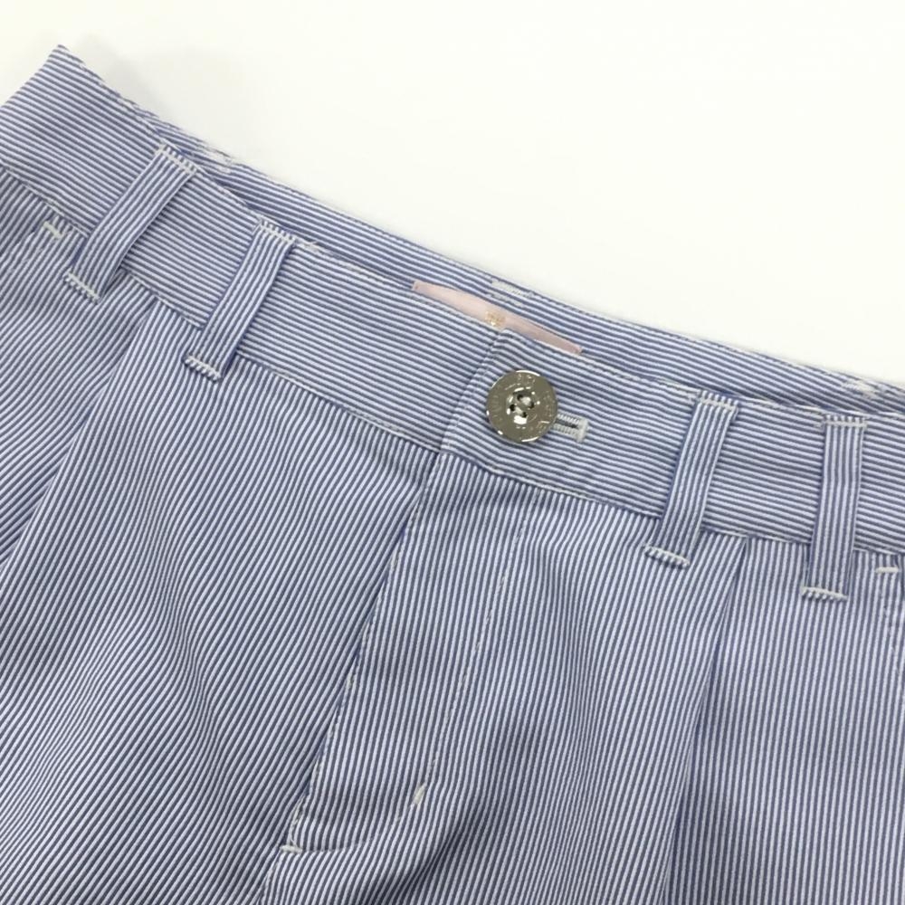 【美品】サマンサタバサUNDER25 ショートパンツ 白×ブルー ストライプ 裾ワッペン レディース M ゴルフウェア Samantha Thavasa