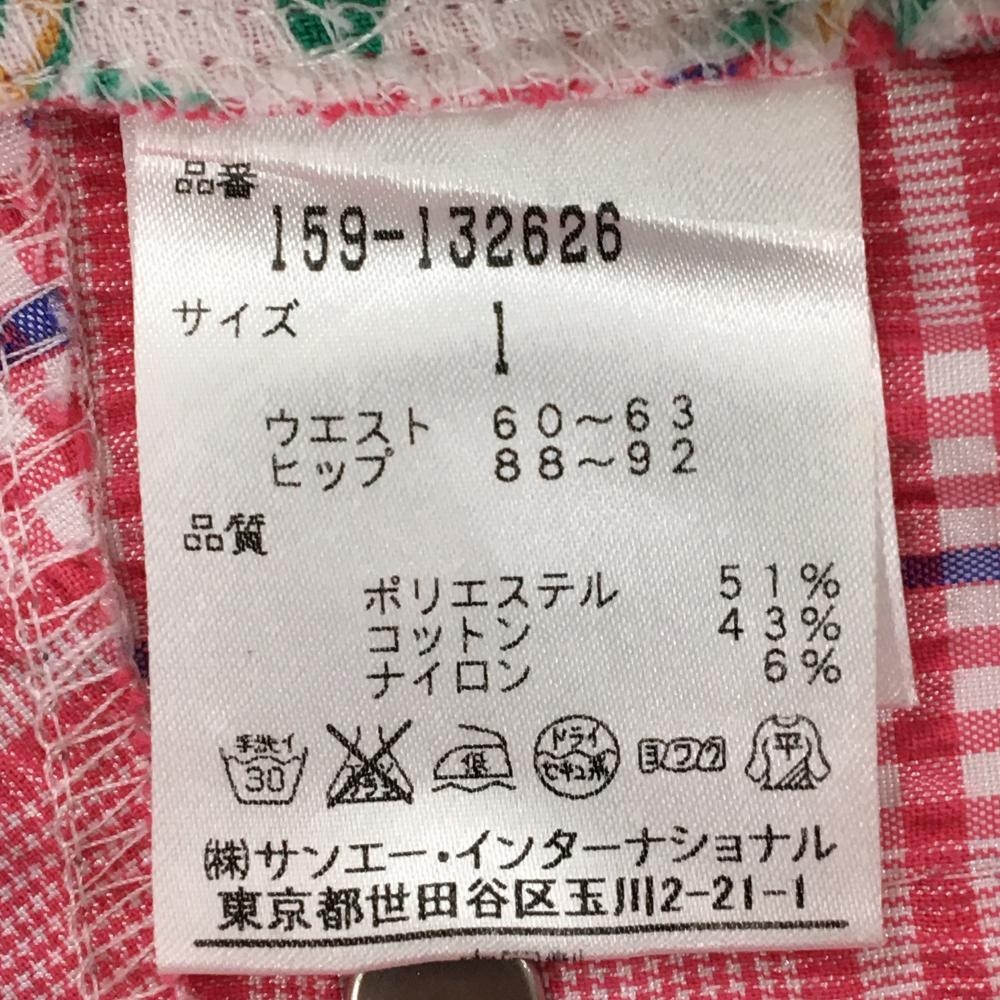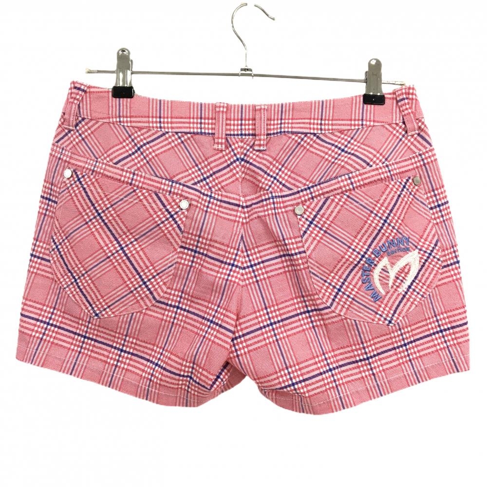 【超美品】マスターバニー ショートパンツ ピンク×ブルー チェック ストレッチ レディース 1(M) ゴルフウェア MASTER BUNNY EDITION