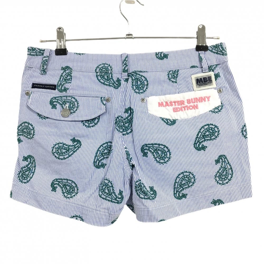 マスターバニー ショートパンツ ブルー×グリーン 細ストライプ レディース 1(M) ゴルフウェア サンプル品 MASTER BUNNY EDITION