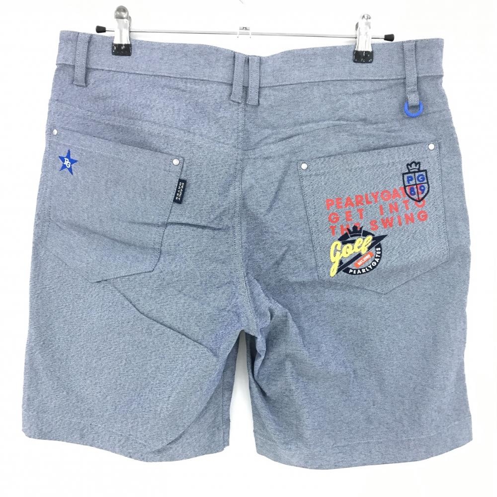 【美品】パーリーゲイツ ハーフパンツ 杢ネイビー ロゴ刺しゅう メンズ 6(XL) ゴルフウェア PEARLY GATES