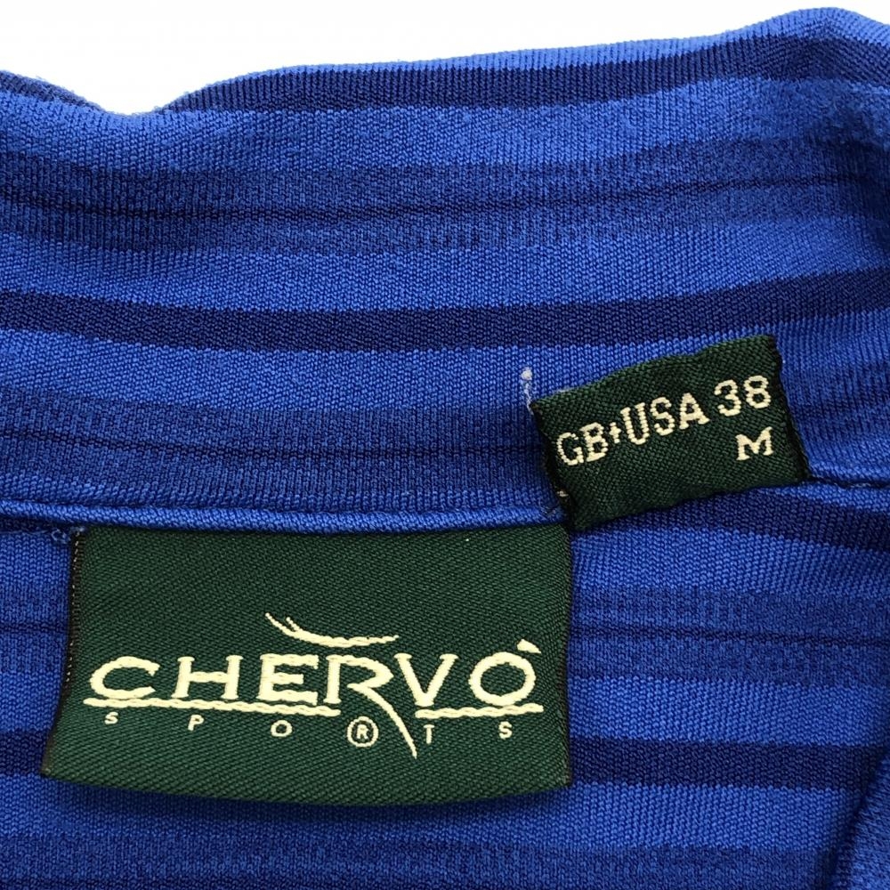 シェルボ 半袖ポロシャツ ブルー×ネイビー ボーダー SUNBLOCK メンズ M ゴルフウェア CHERVO