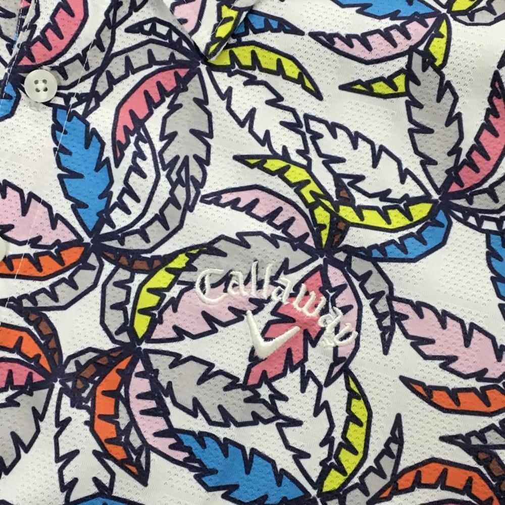 【美品】キャロウェイ 半袖ポロシャツ 白×ピンク リーフ柄 メンズ L ゴルフウェア Callaway