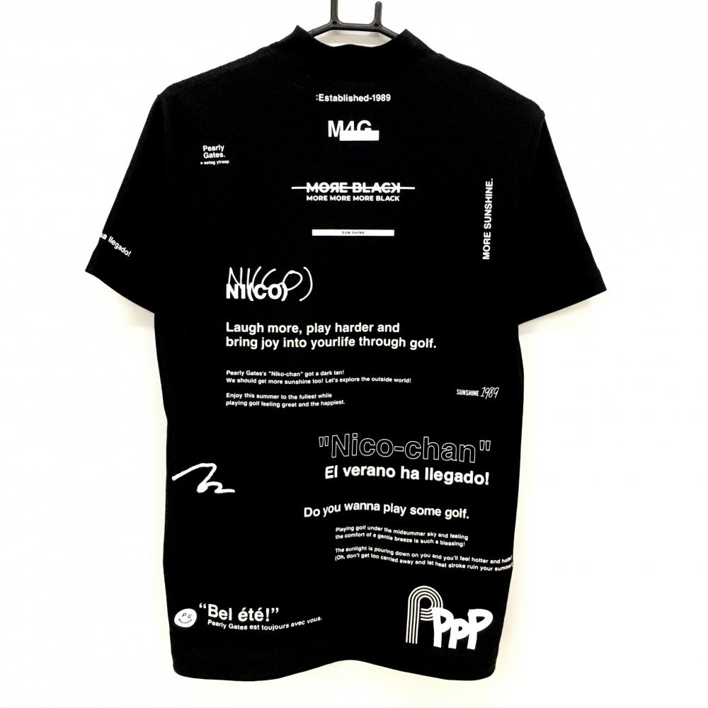 【超美品】パーリーゲイツ 半袖ハイネックシャツ 黒×白 ロゴプリント メンズ 4(M) ゴルフウェア 2024年モデル PEARLY GATES