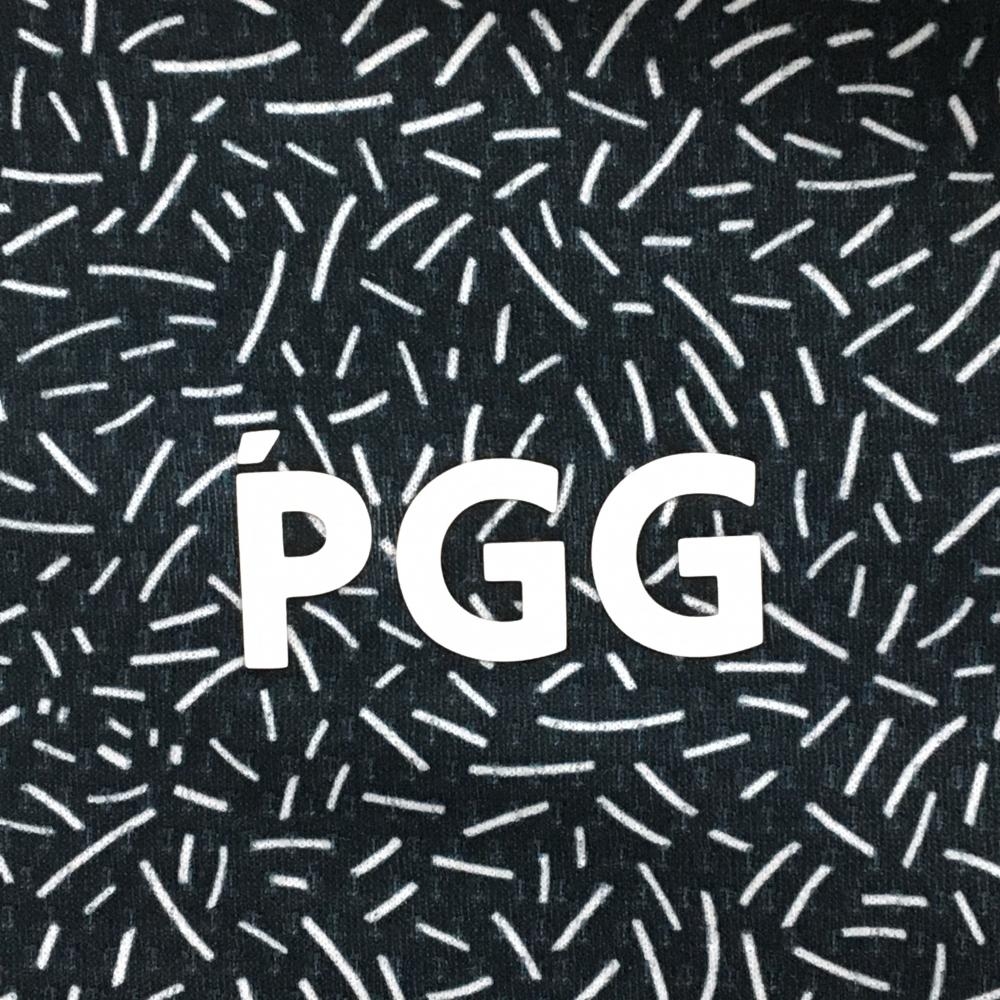 【美品】PGGパーリーゲイツ 半袖ハイネックシャツ ダークネイビー×白 総柄 背面ロゴ メンズ 5(L) ゴルフウェア PEARLY GATES
