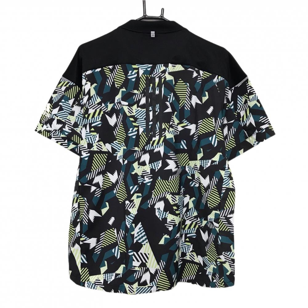 【美品】アディダス 半袖スニード 黒×グリーン×白 袖ロゴ メンズ L ゴルフウェア adidas