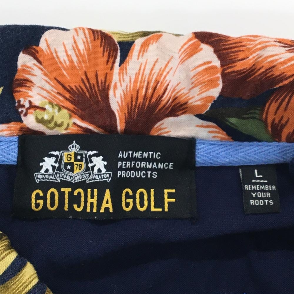 【美品】ガッチャゴルフ 半袖ポロシャツ ネイビー×ブルー 襟・背面一部花柄 バック・襟裏ロゴ メンズ L ゴルフウェア GOTCHA GOLF