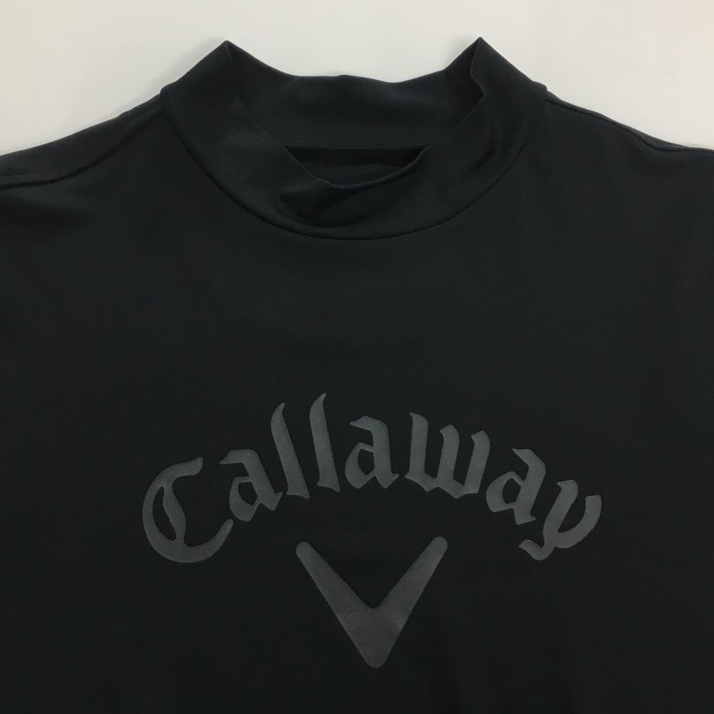 【超美品】キャロウェイ 半袖ハイネックシャツ 黒×ダークグレー フロントロゴプリント メンズ L ゴルフウェア Callaway