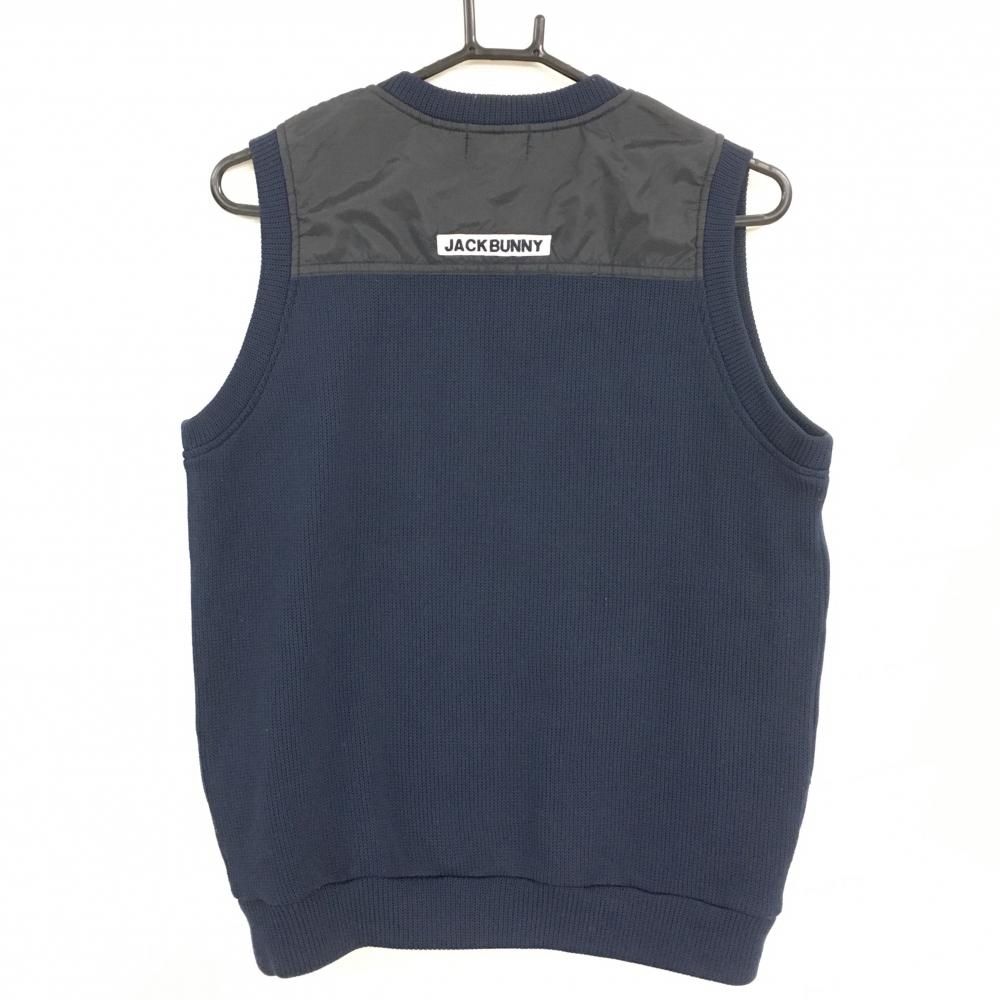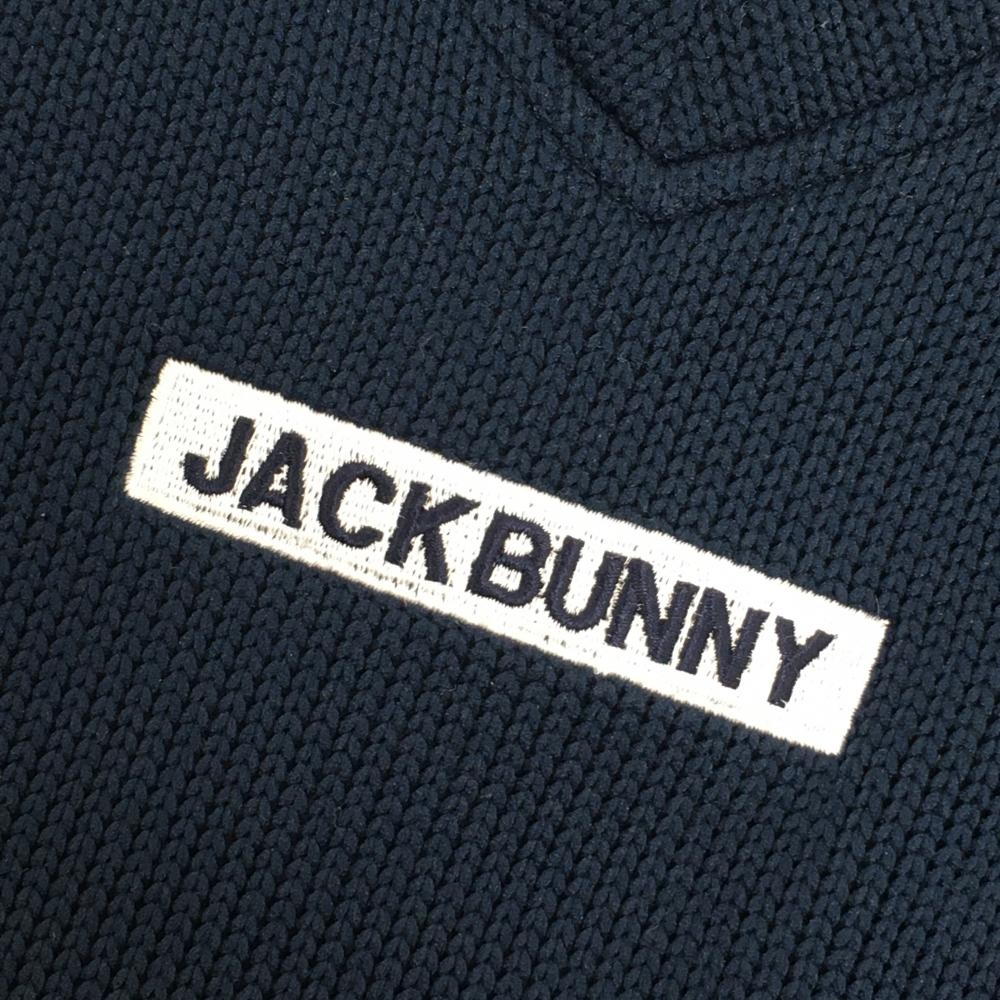【超美品】ジャックバニー ニットベスト ネイビー×白 フロントロゴ ポケット切替 メンズ 5(L) ゴルフウェア Jack Bunny