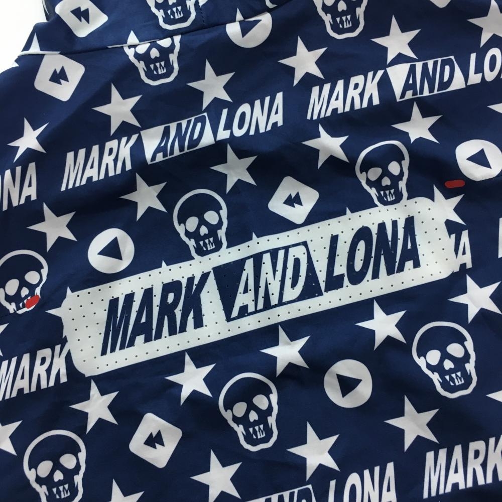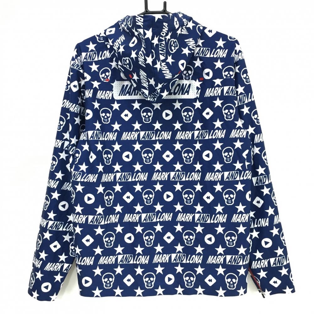 【超美品】マークアンドロナ ジップパーカー ネイビー×白 スカル・星総柄 一部パンチング メンズ 48(L) ゴルフウェア MARK&LONA
