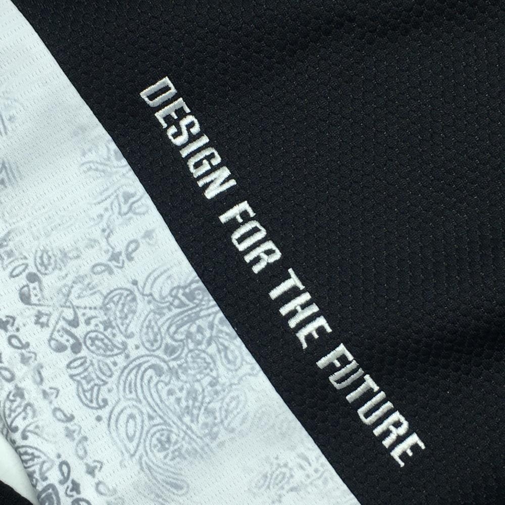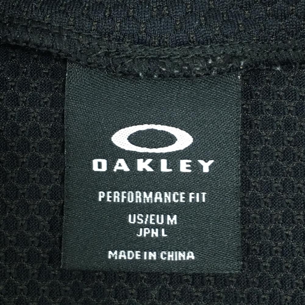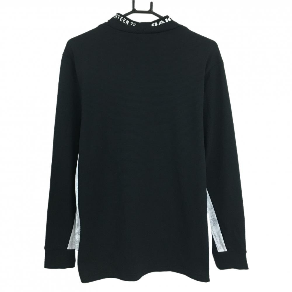 【超美品】オークリー 長袖ハイネックシャツ 黒×白 サイドペイズリー柄 織生地 ロゴ刺しゅう メンズ L ゴルフウェア Oakley