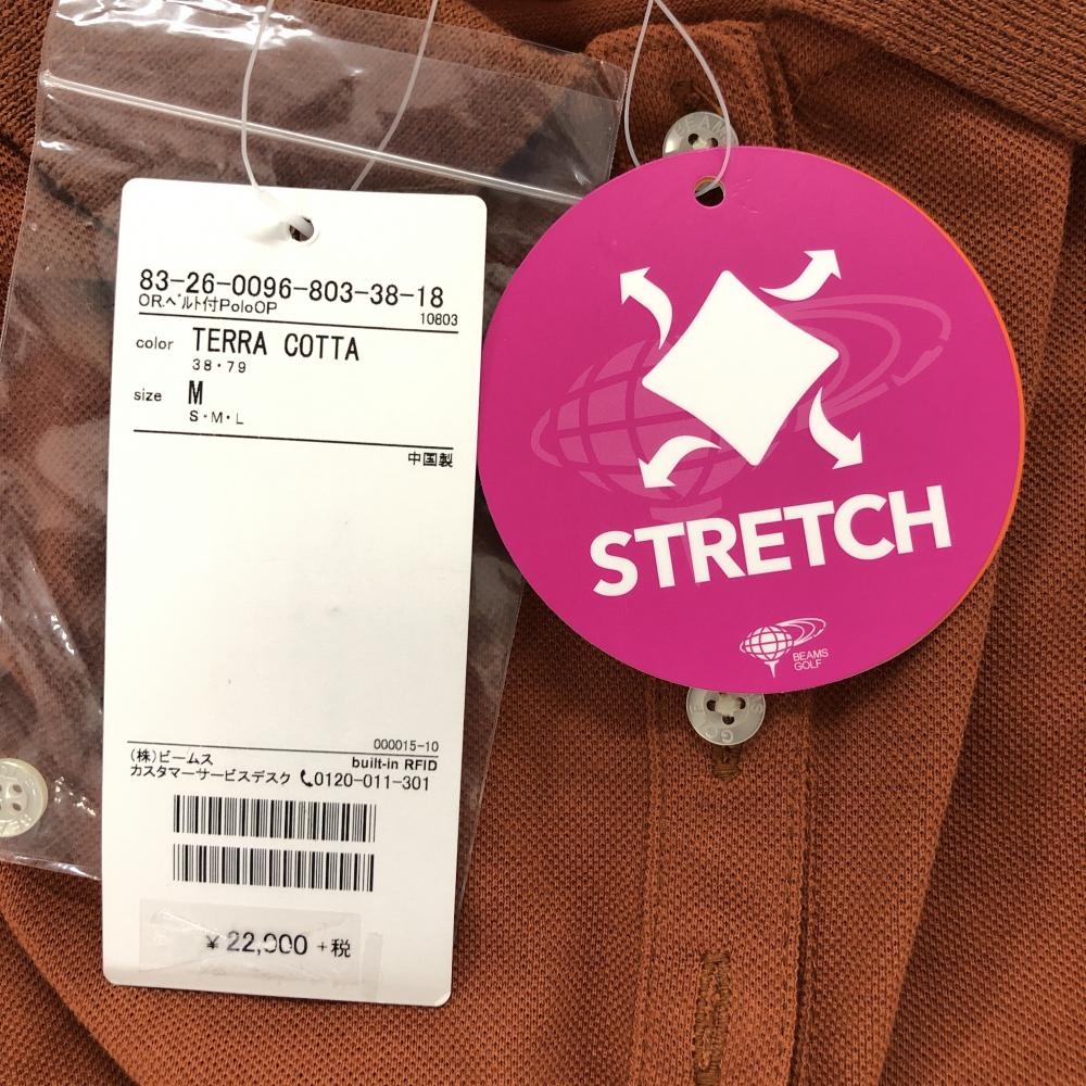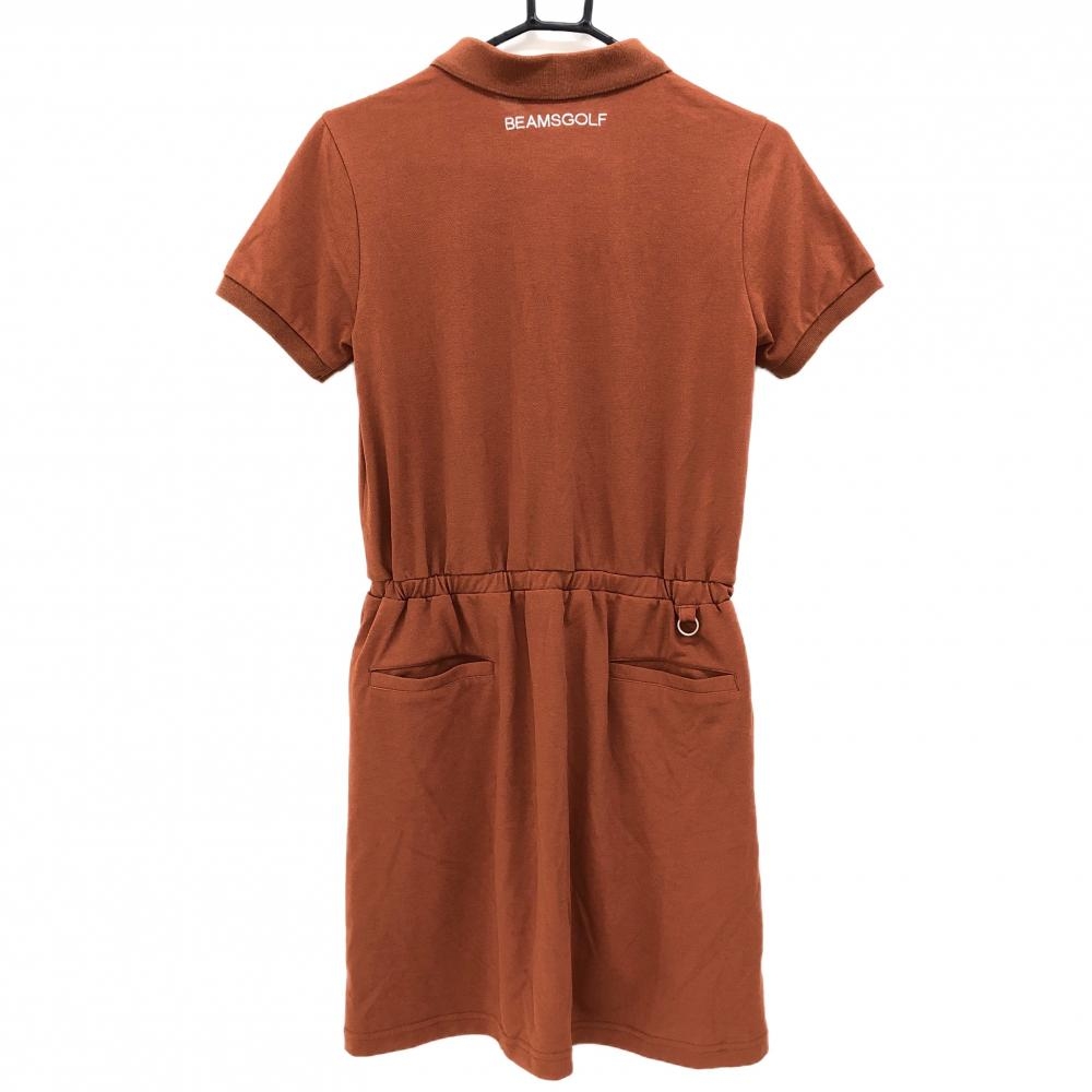 【新品】ビームスゴルフ 半袖ポロワンピース ブラウン ベルト付 ストレッチ DRY UVカット レディース M ゴルフウェア BEAMS GOLF