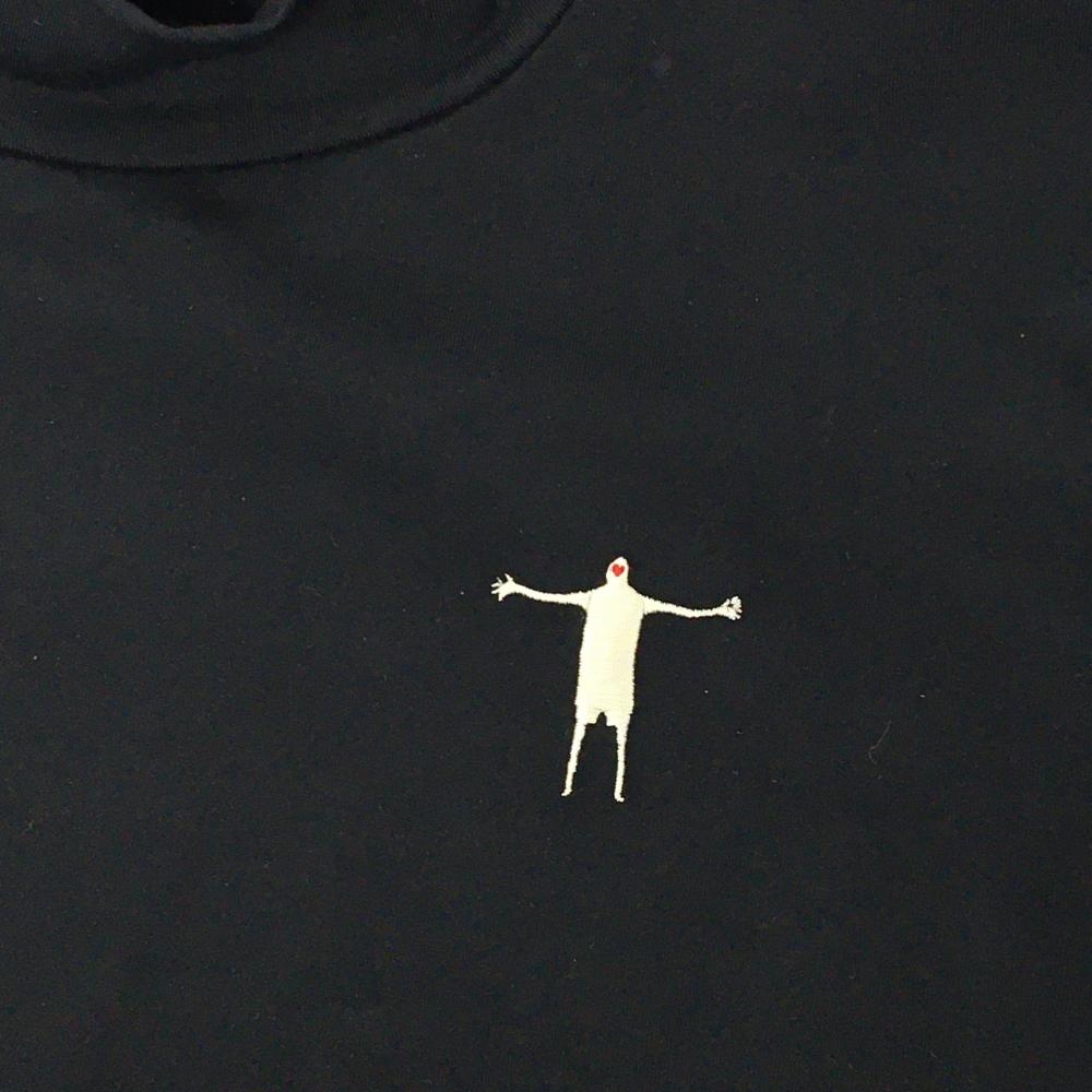 【美品】ティーマック 半袖ハイネックシャツ 黒×白 背面英字刺しゅう リブライン レディース M ゴルフウェア T-MAC
