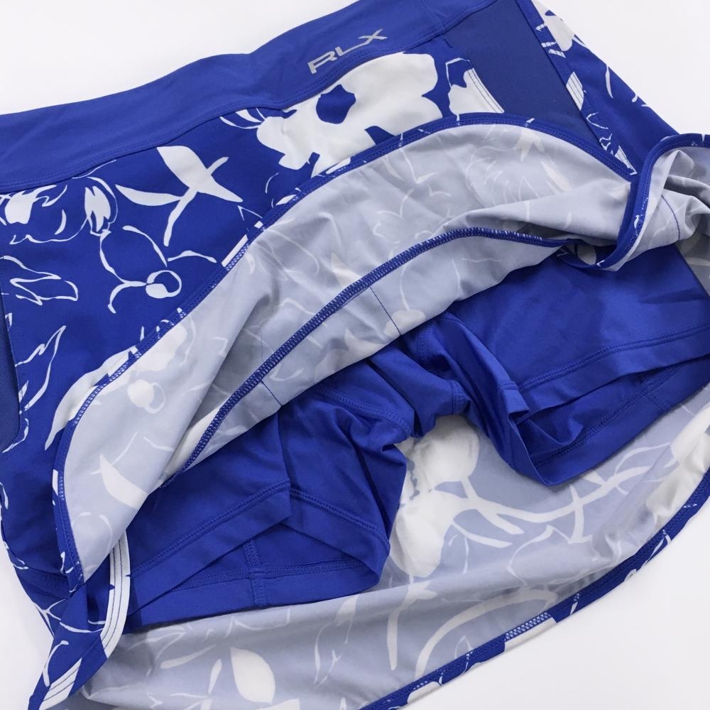 【美品】RLXラルフローレン スカート ブルー×白 花柄 ウエストゴム 内側インナーパンツ レディース XS ゴルフウェア Ralph Lauren