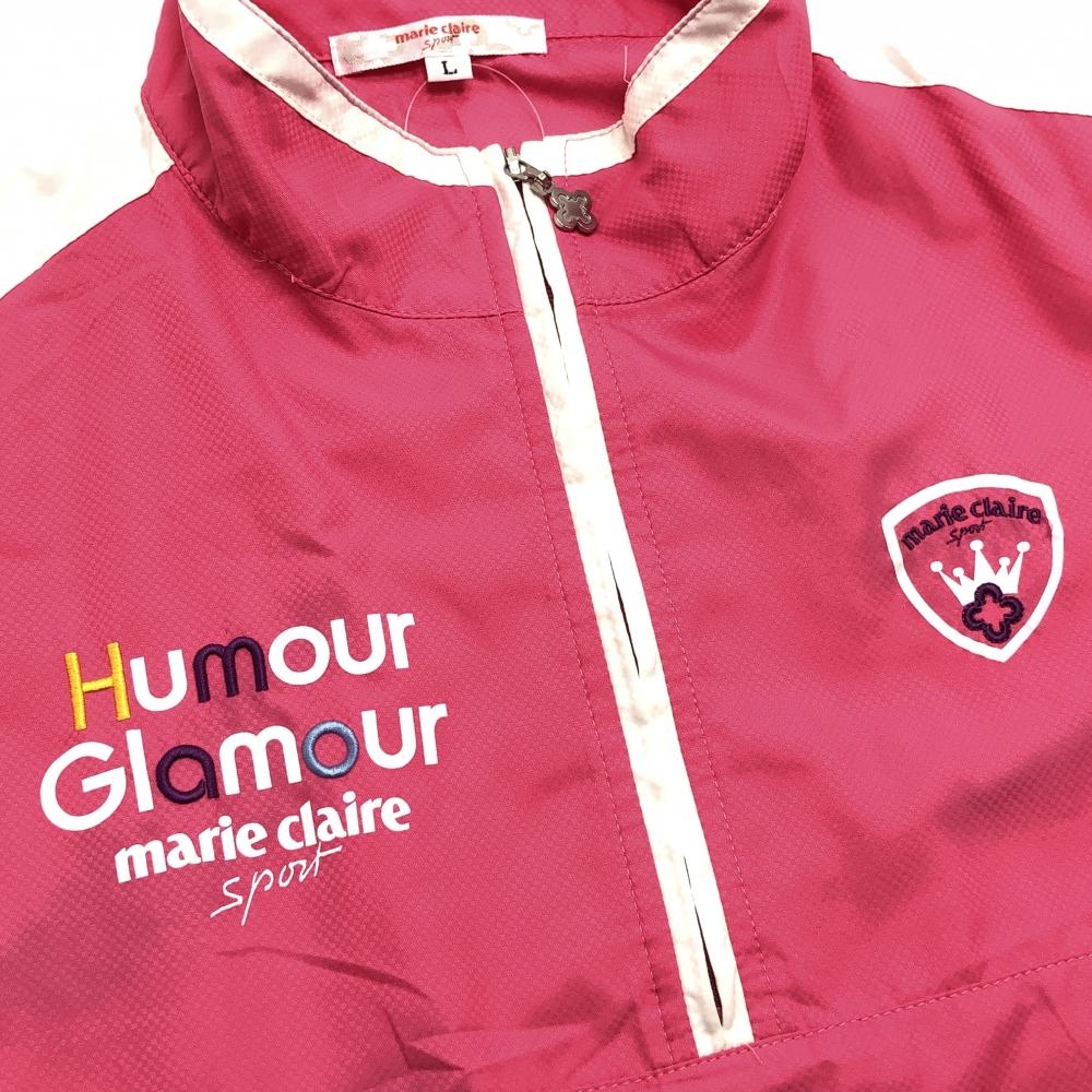 マリクレールスポール 半袖ブルゾン ピンク×白 ハーフジップ 裾ドローコード レディース L ゴルフウェア marie claire