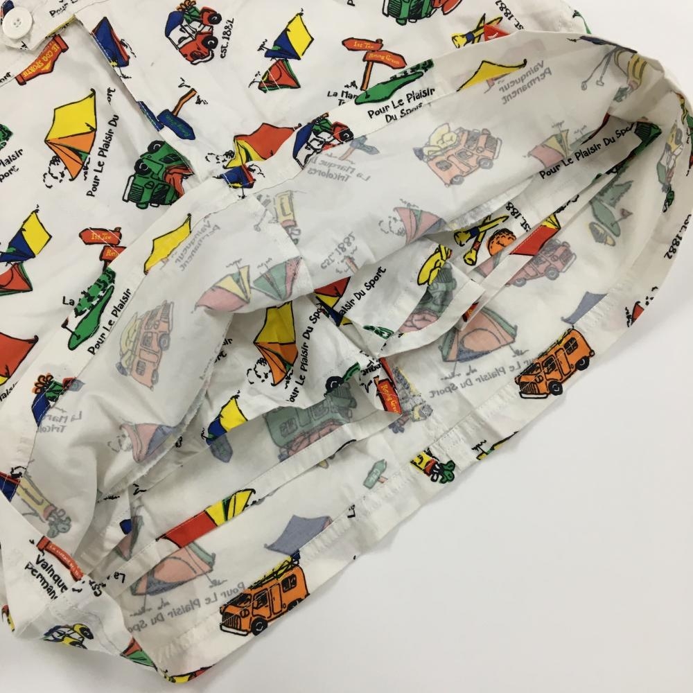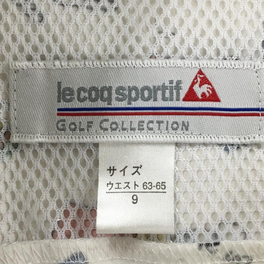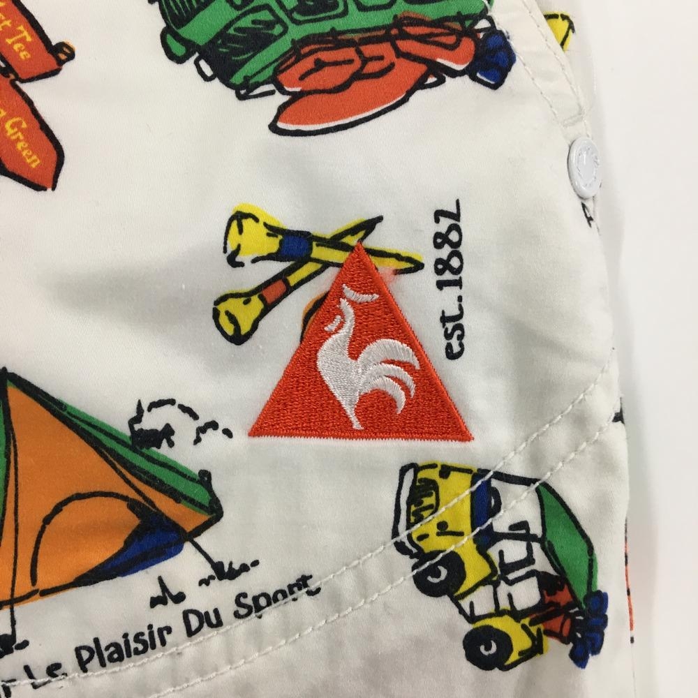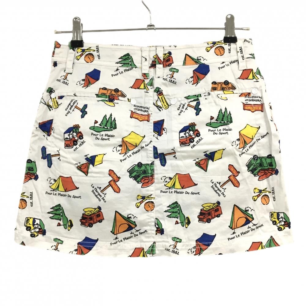 【美品】ルコックゴルフ スカート 白×マルチカラー 総柄 テント 車 レディース 9 ゴルフウェア le coq sportif