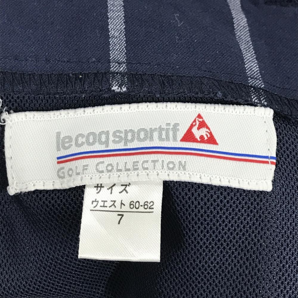 【美品】ルコック スカート ネイビー×白 ストライプ 裏一部メッシュ 内側パンツ レディース 7 ゴルフウェア le coq sportif