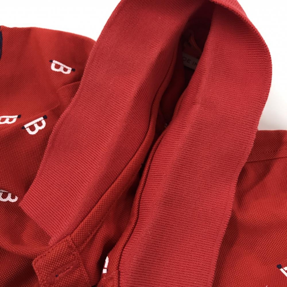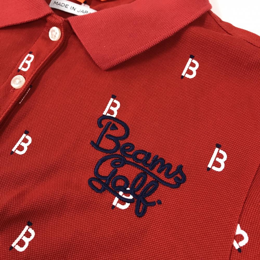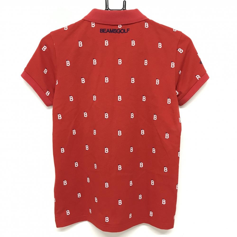 【美品】ビームスゴルフ 半袖ポロシャツ レッド×白 総柄 レディース M ゴルフウェア BEAMS GOLF