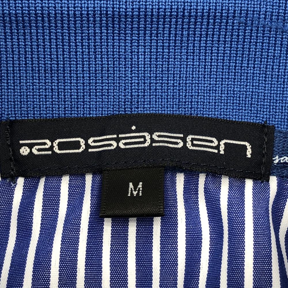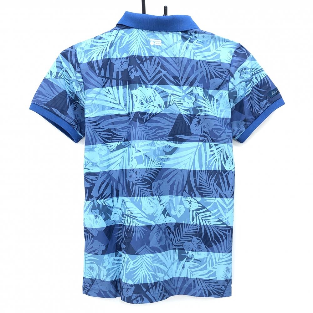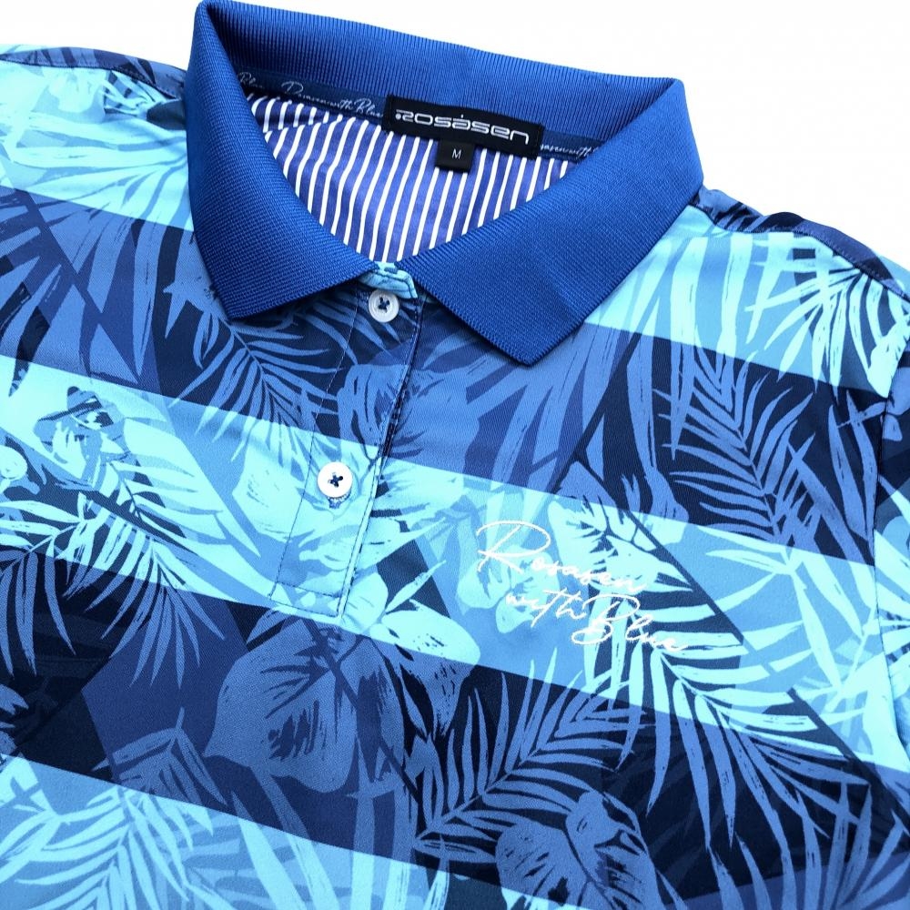 【美品】ロサーセン 半袖ポロシャツ ブルー リーフ総柄 レディース M ゴルフウェア Rosasen