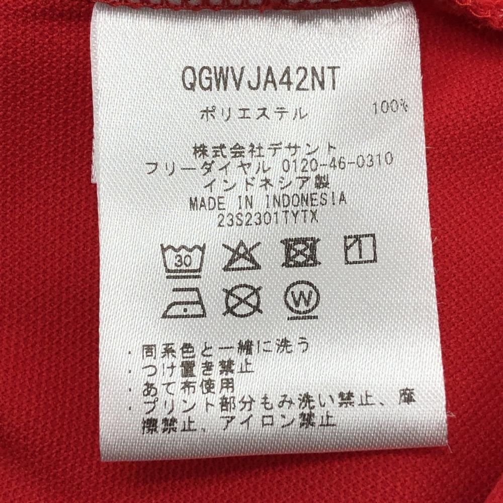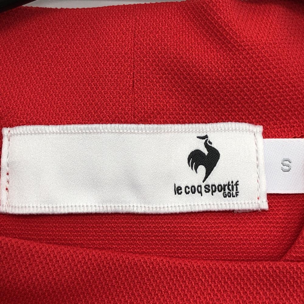 【超美品】ルコック 半袖ハイネックシャツ レッド×白 胸元プリント レディース S ゴルフウェア le coq sportif