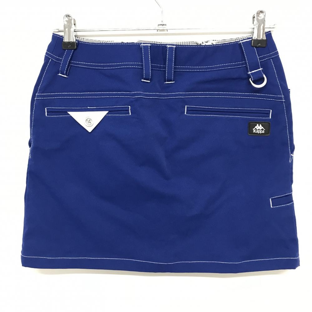 【超美品】カッパ スカート ブルー ウエスト内側グレンチェック ステッチ白 レディース S ゴルフウェア Kappa