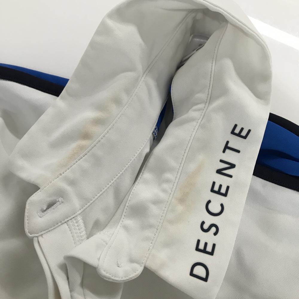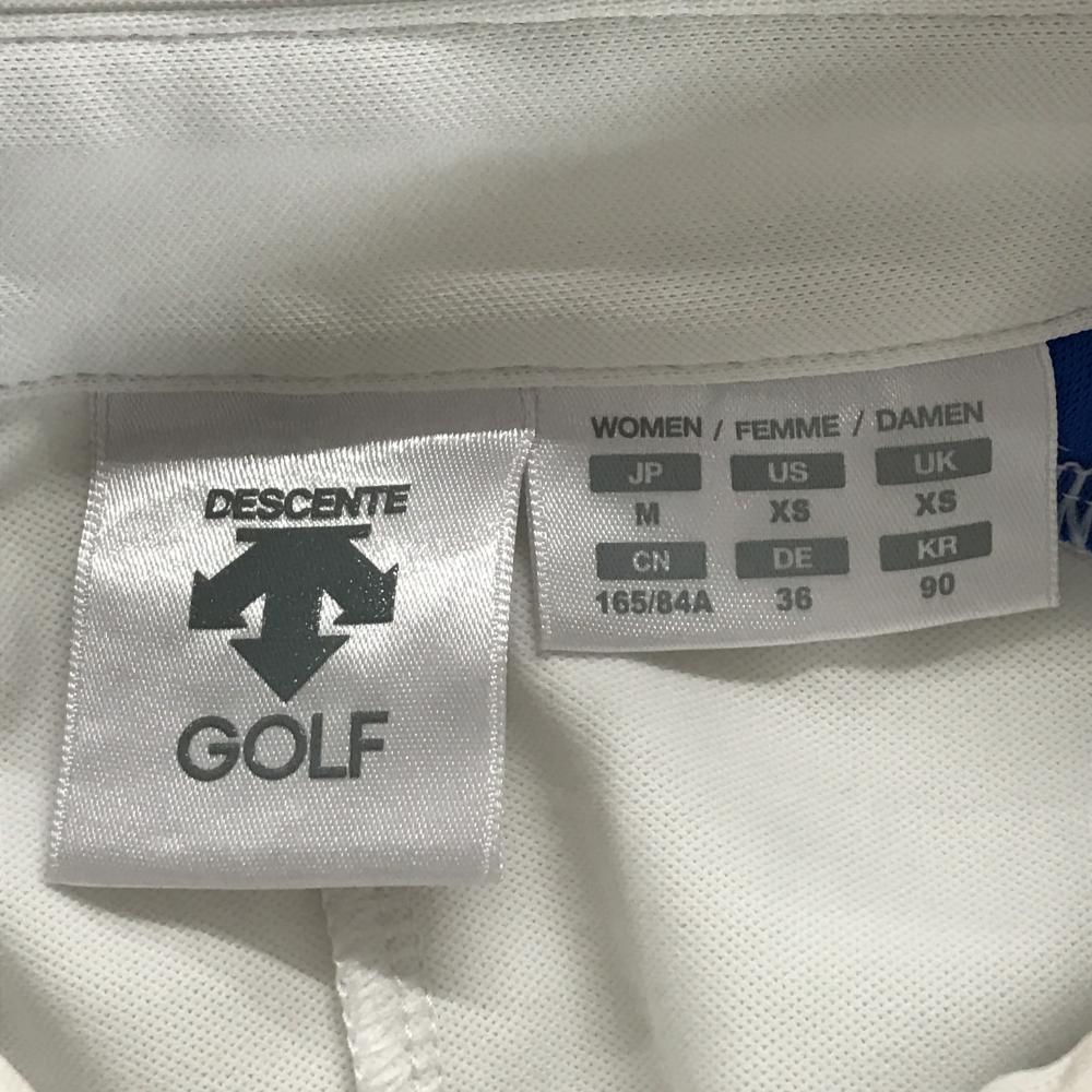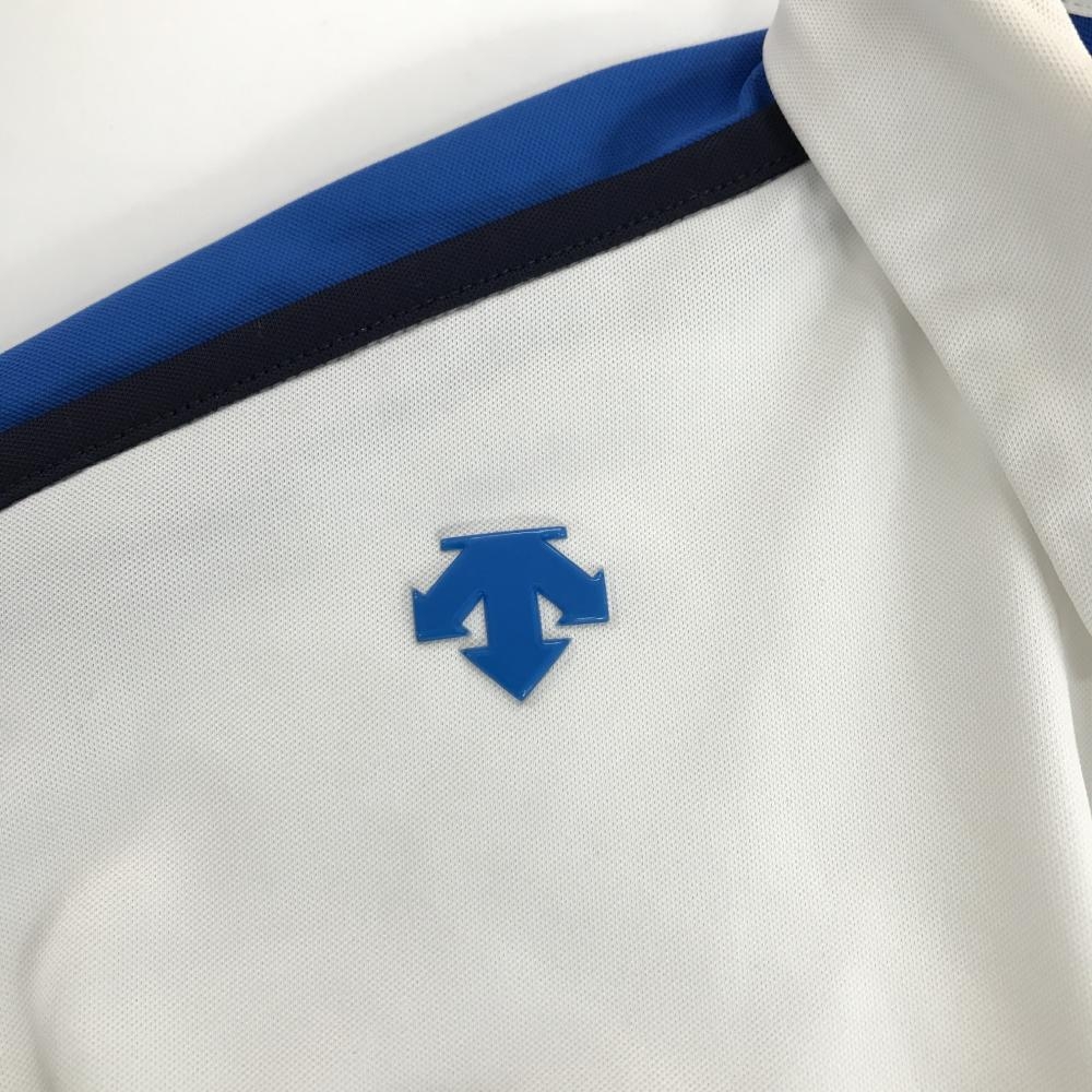 デサントゴルフ 半袖ポロシャツ 白×ネイビー パイピング 肩ロゴ フレンチスリーブ 中田英寿 レディース M ゴルフウェア DESCENTE