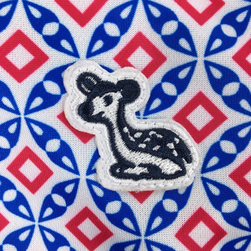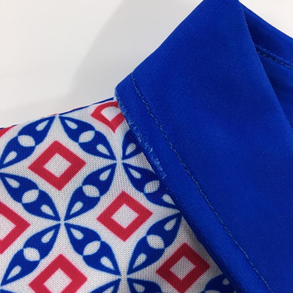 【美品】エフィカス 半袖ポロワンピース 白×ブルー×レッド 総柄 レディース 2(M) ゴルフウェア efficace