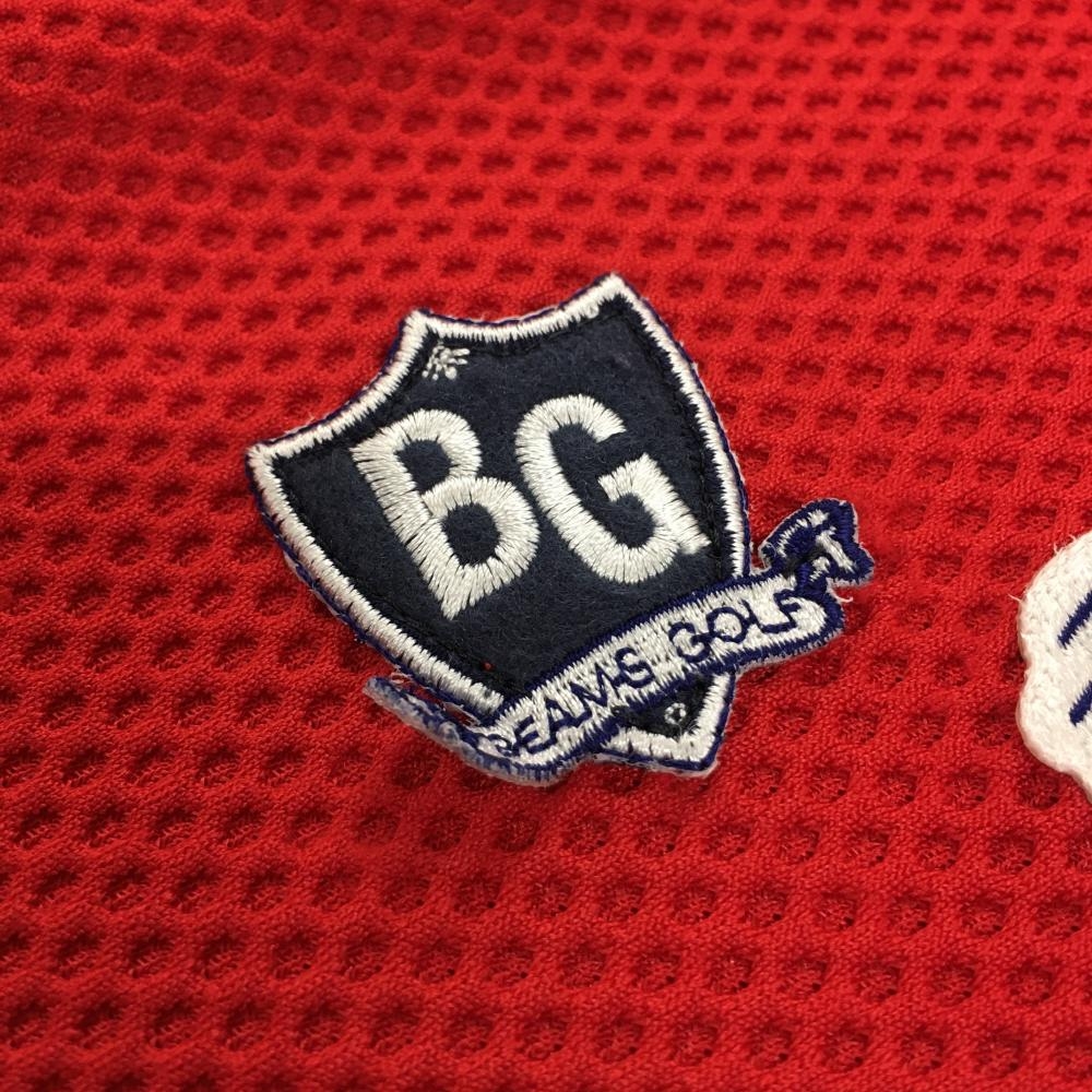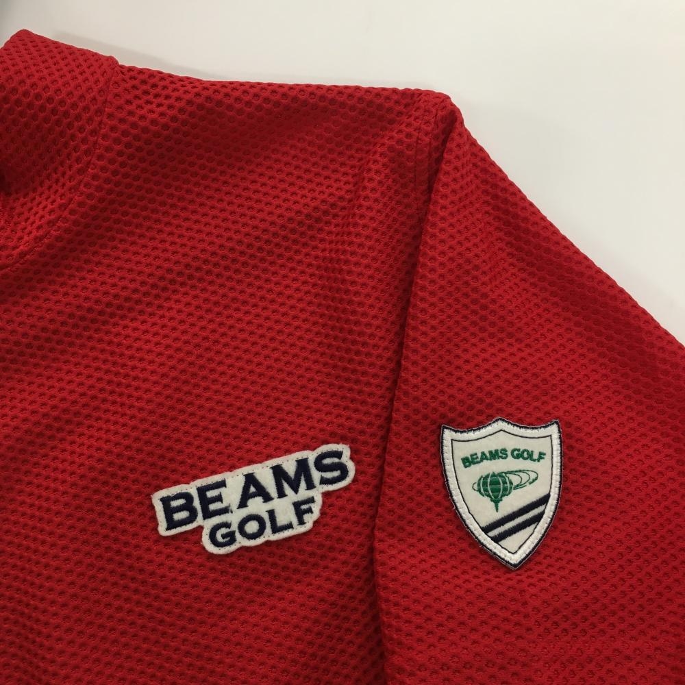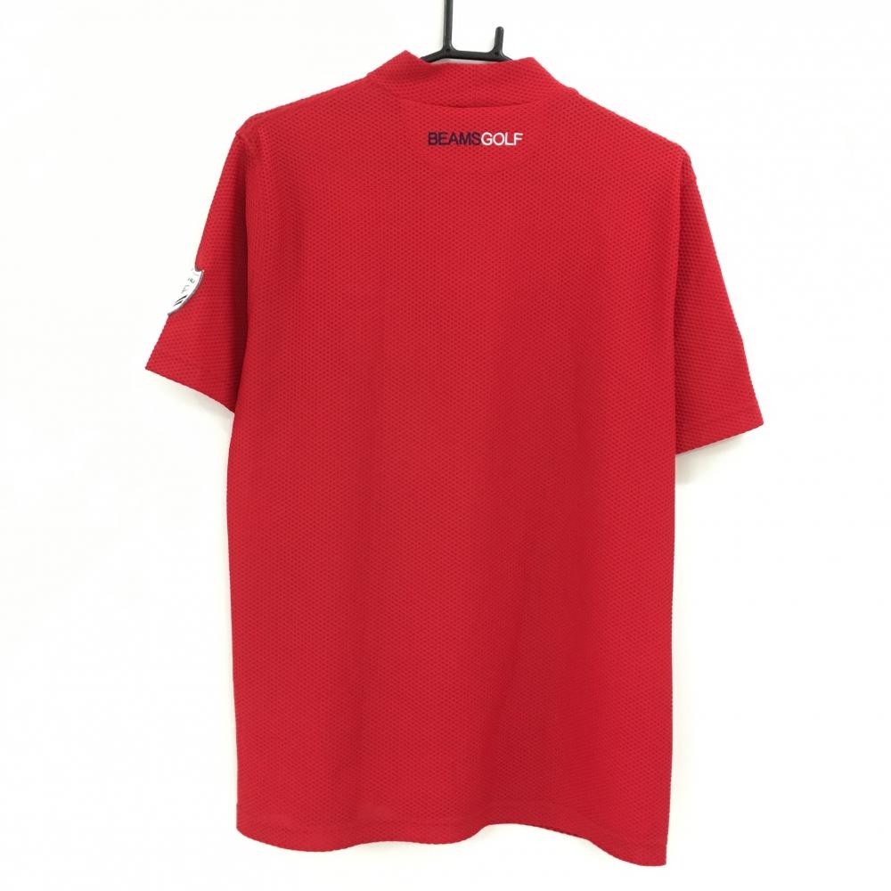 【美品】ビームスゴルフ 半袖ハイネックシャツ レッド 複数ワッペン 凹凸生地 メンズ L ゴルフウェア BEAMS GOLF