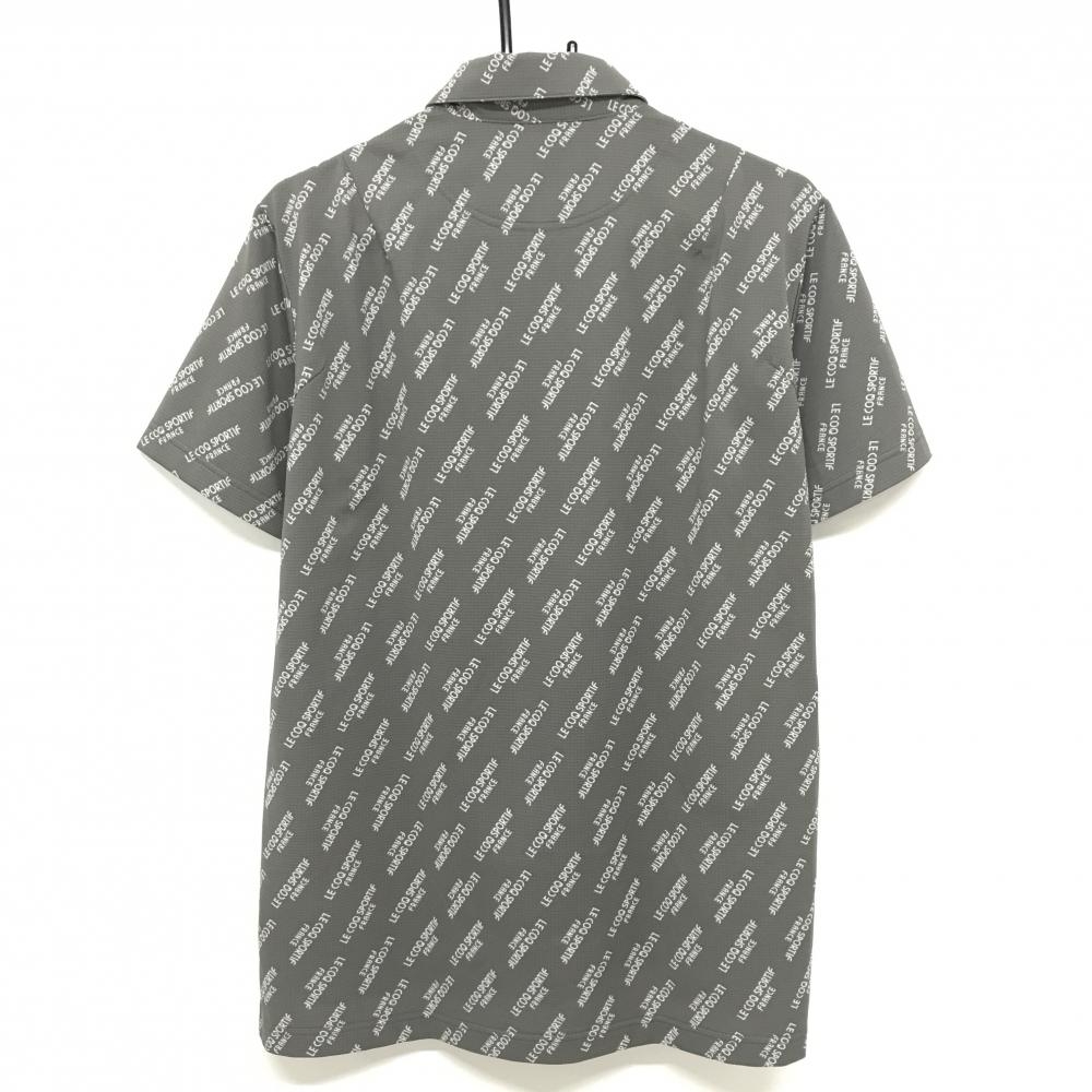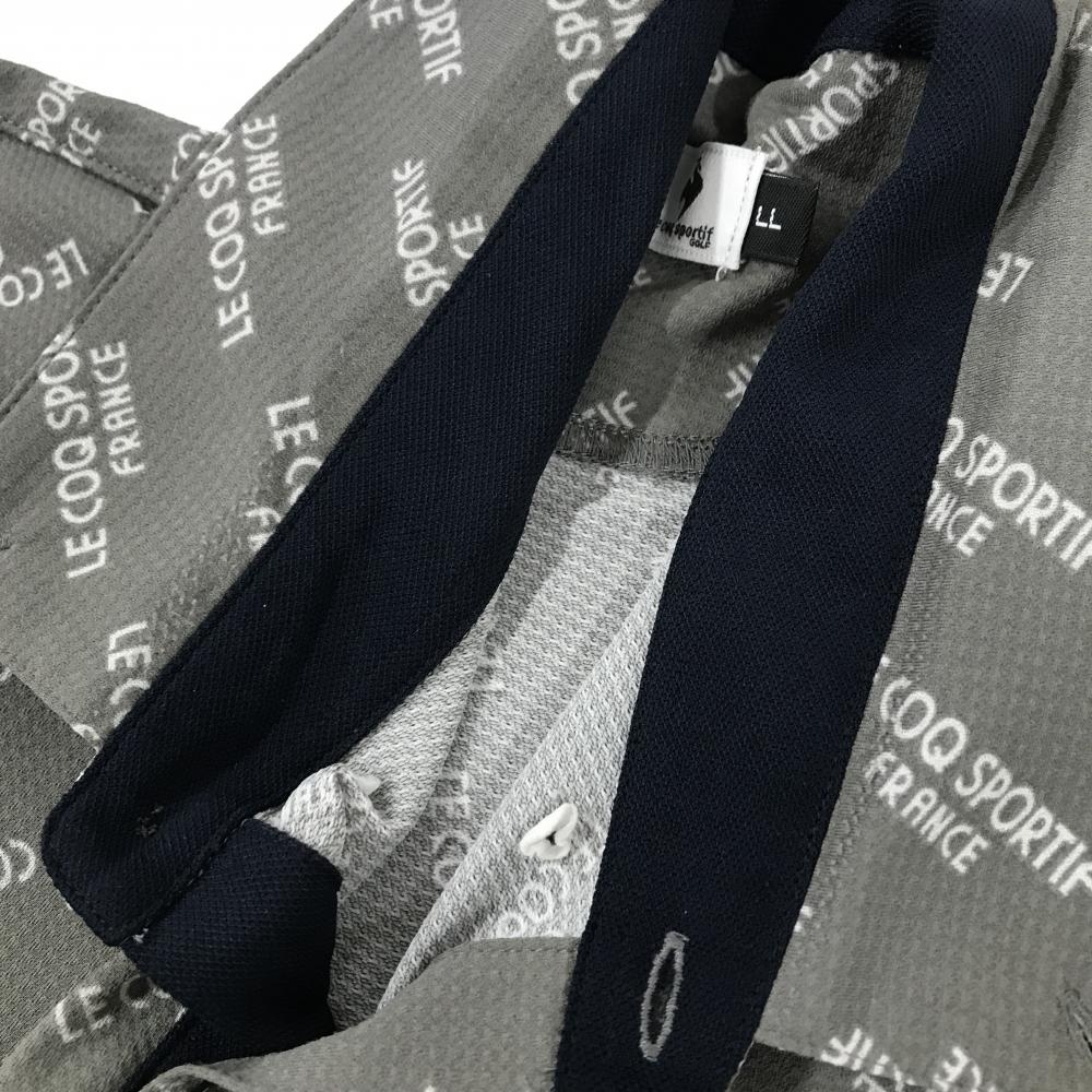 ルコックゴルフ 半袖ポロシャツ グレー×白 英字ロゴ総柄 ボタンダウン メンズ LL ゴルフウェア le coq sportif